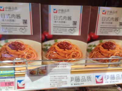 地下1階は食料品売り場。惣菜類は中華、洋食、和食(洋食、和食はある程度現地向けにアレンジされている)やカットフルーツが並んでいて、夕方になると商品が徐々に値引きされる模様。北京の華堂広場(北京のイトーヨーカドー)に比べて活気があります。また、パンやレトルト商品などにはオリジナルブランド(伊藤品質)があって、こちらも人気のようでした。