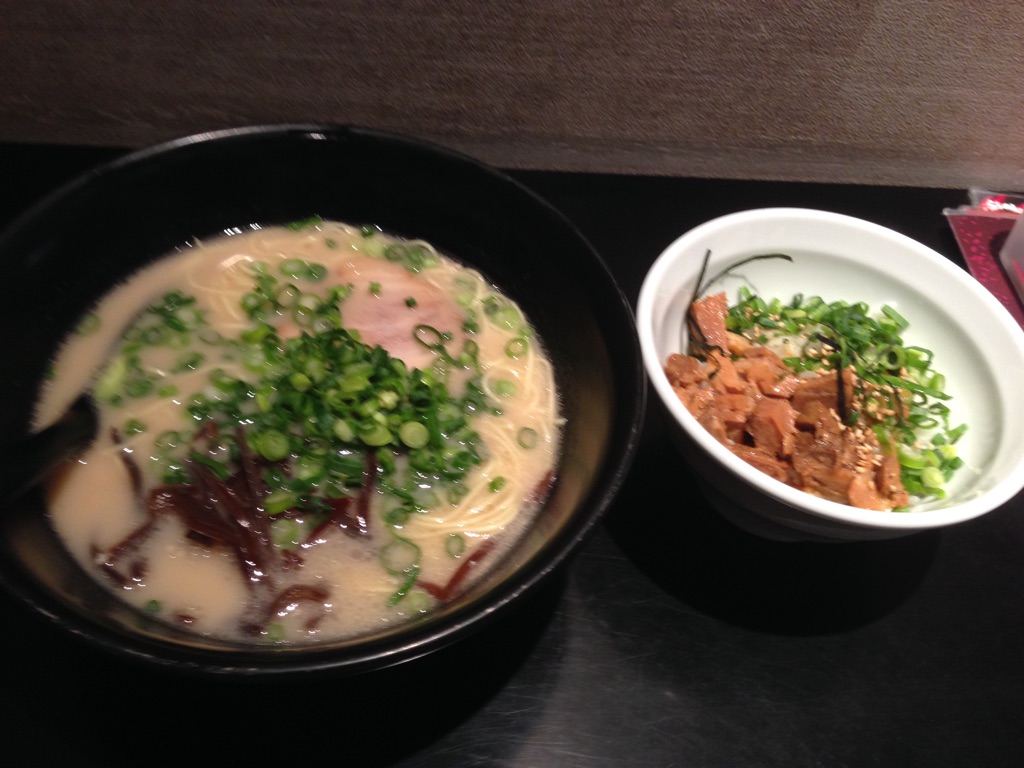 ランチタイム(11時~17時)は150円プラスで高菜丼かチャーシュー丼が付けられます。「和風」というだけにスープはあっさりめ。全部飲んでも胃にもたれない感じ。