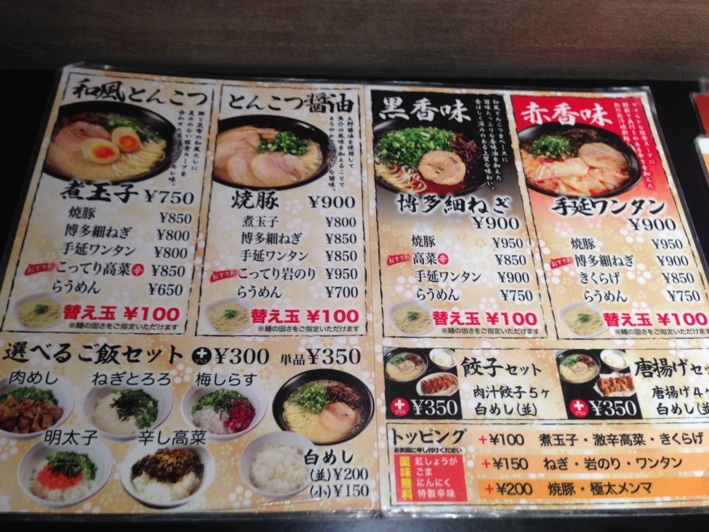 金沢百番街あんと3階(金沢駅の改札から西側に向いエスカレーターで3階へ)にあるので豚骨ラーメンが食べたくなった時には良いかも。- 旅行時期
