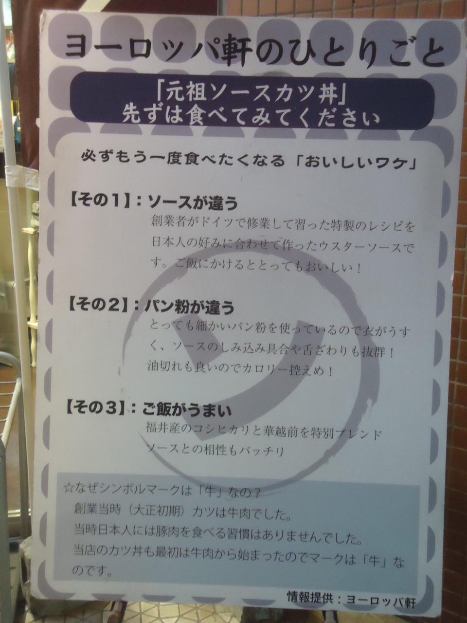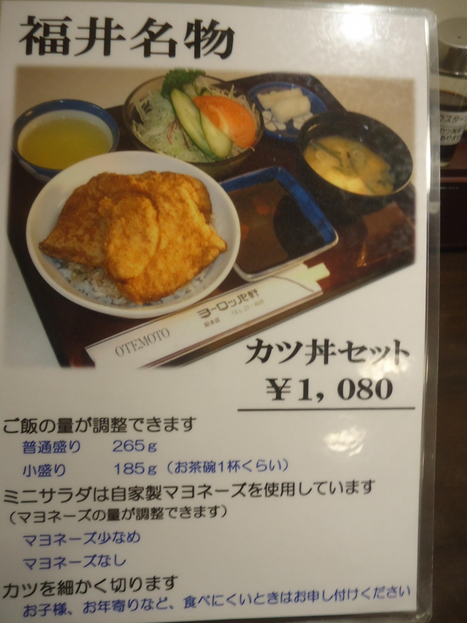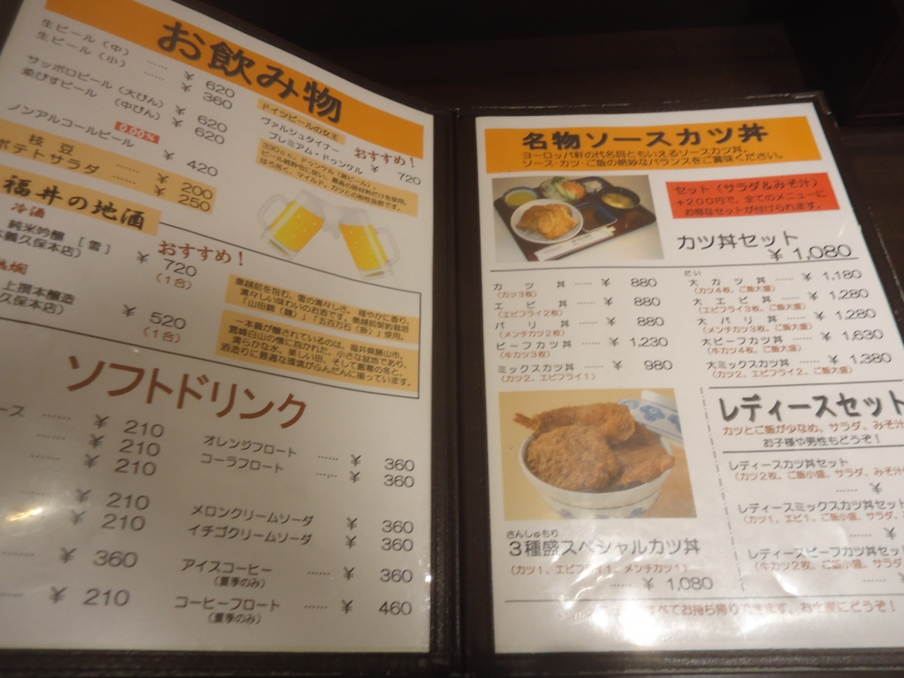 日本ではいろいろな地域にソースかつ丼がありますが、福井のソースかつ丼はカツが違うような。パン粉が非常に細やかでソースによく合います。そのソースウスターソースに香辛料が入っているそうで、暖かいご飯にマッチ。揚げ物の油臭さがなくてボリュームはあるもののあっという間に完食してしまいました。