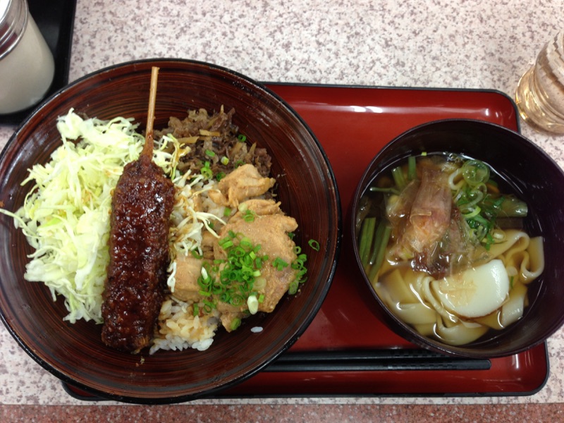 肝心な味ですが、麺は讃岐風なのでコシがあります。それとトッピングのとんかつが揚げたてで意外に美味しかったです(厚すぎず薄すぎず)。