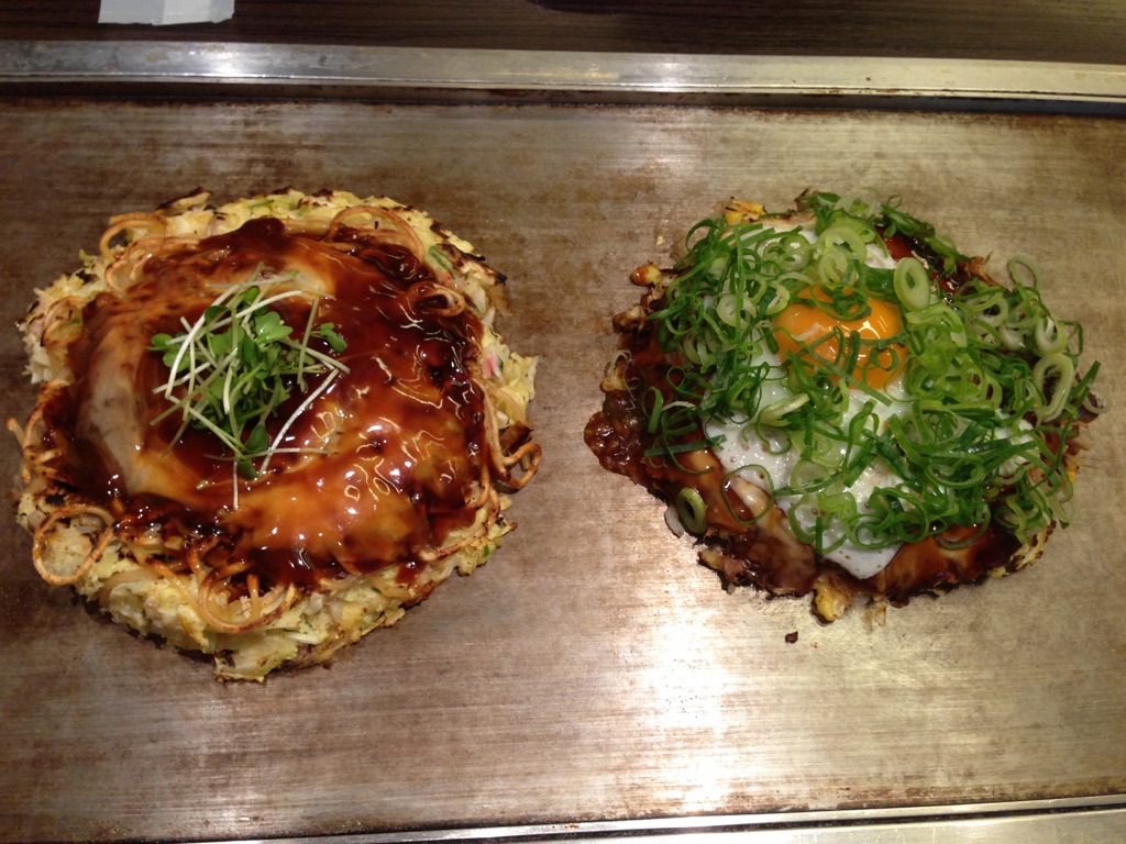 お好み焼きはお店の人が焼いてくれたものを鉄板で食べるスタイル。スタッフの方が美味しく作ってくれるので安心。パリットした焼き加減、中はふわっとした感じはGOOD!
