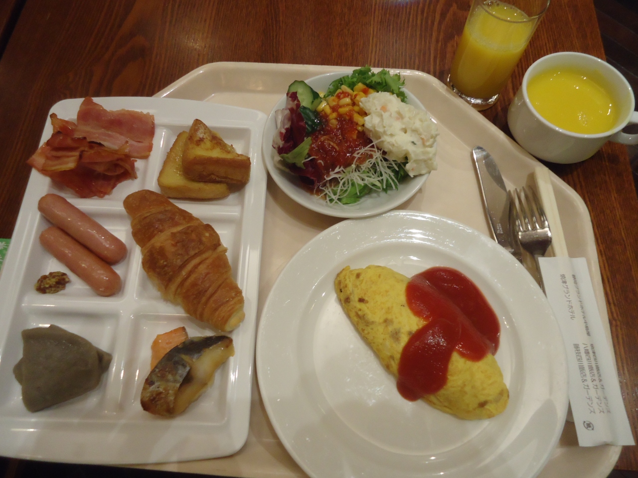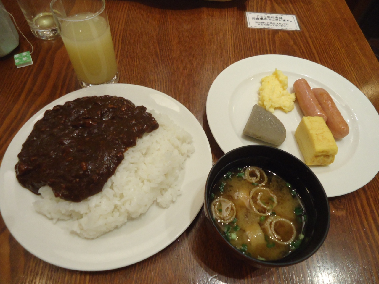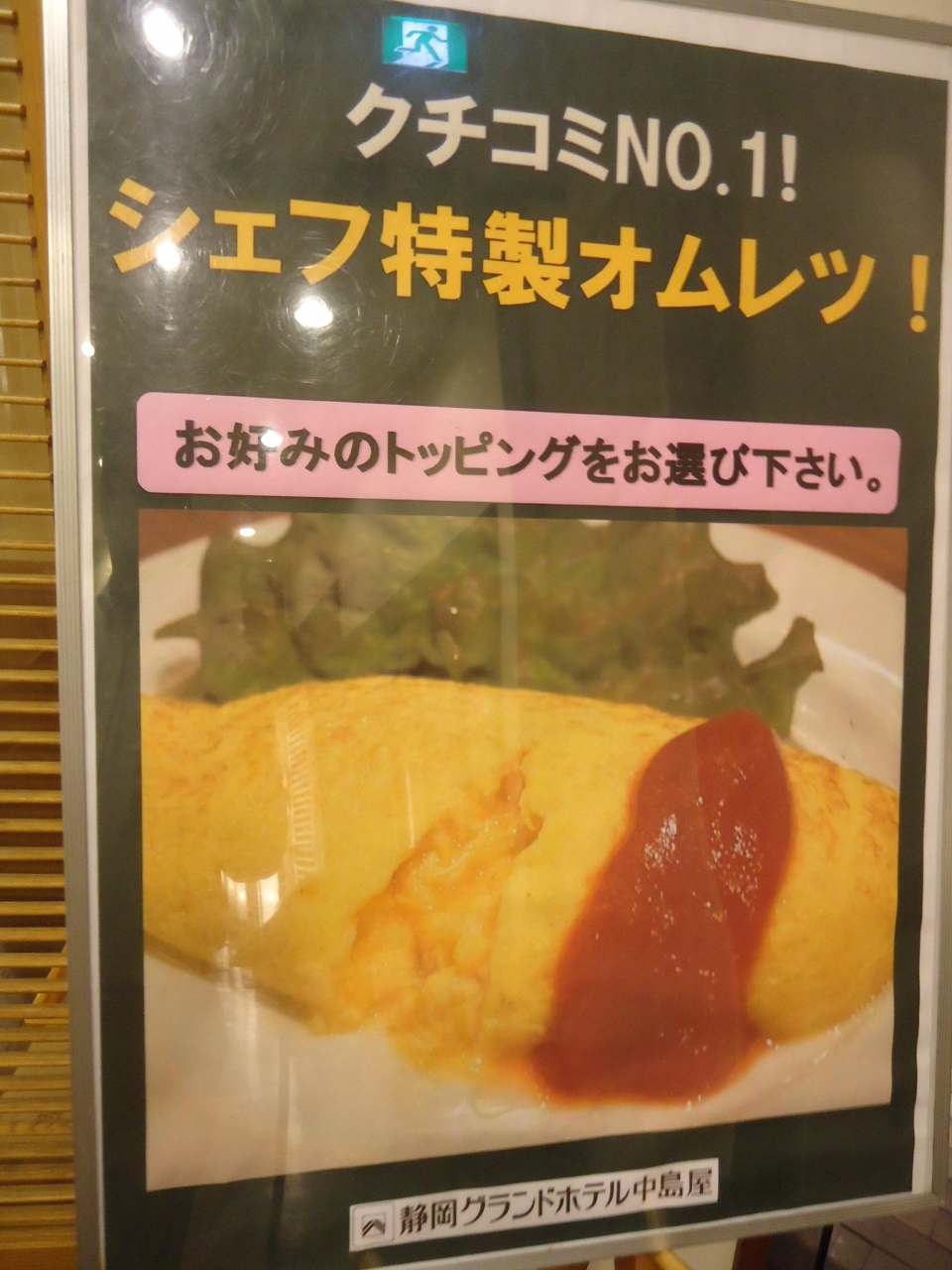 朝食は地下のレストランでのバイキングスタイルが基本のようなのですが、具を選んでシェフがオムレツを焼いてくれたり、特製のカレーがあったり、静岡名物(黒はんぺん、しらす等)があったり、意外に充実。食べ過ぎるかも。