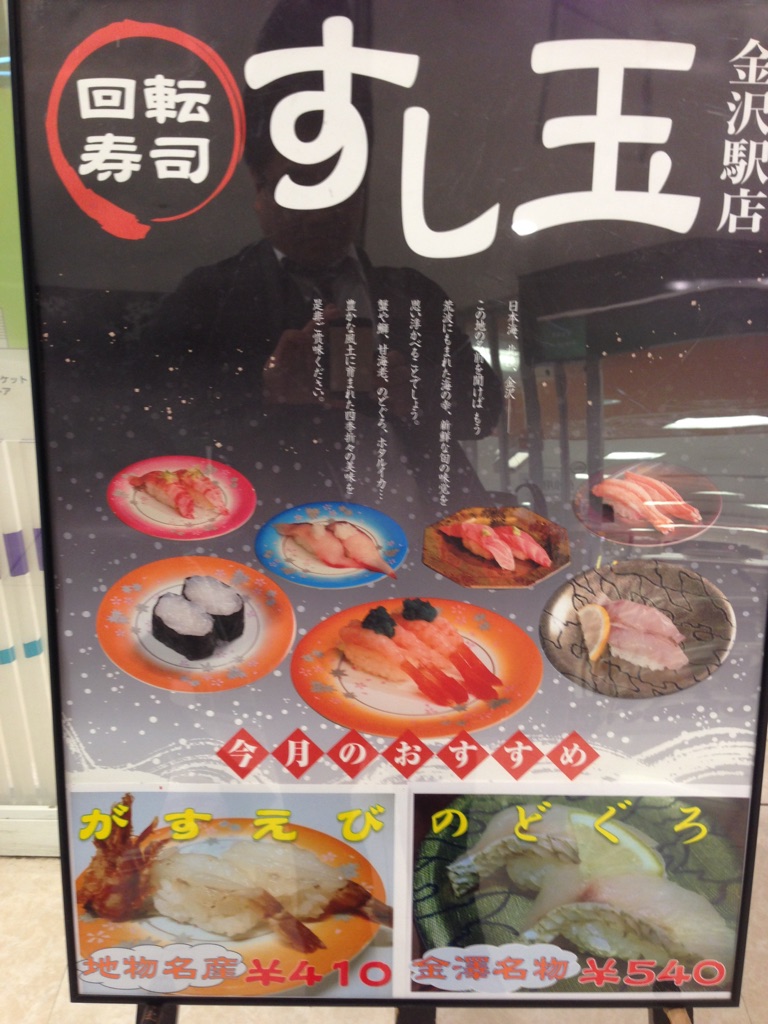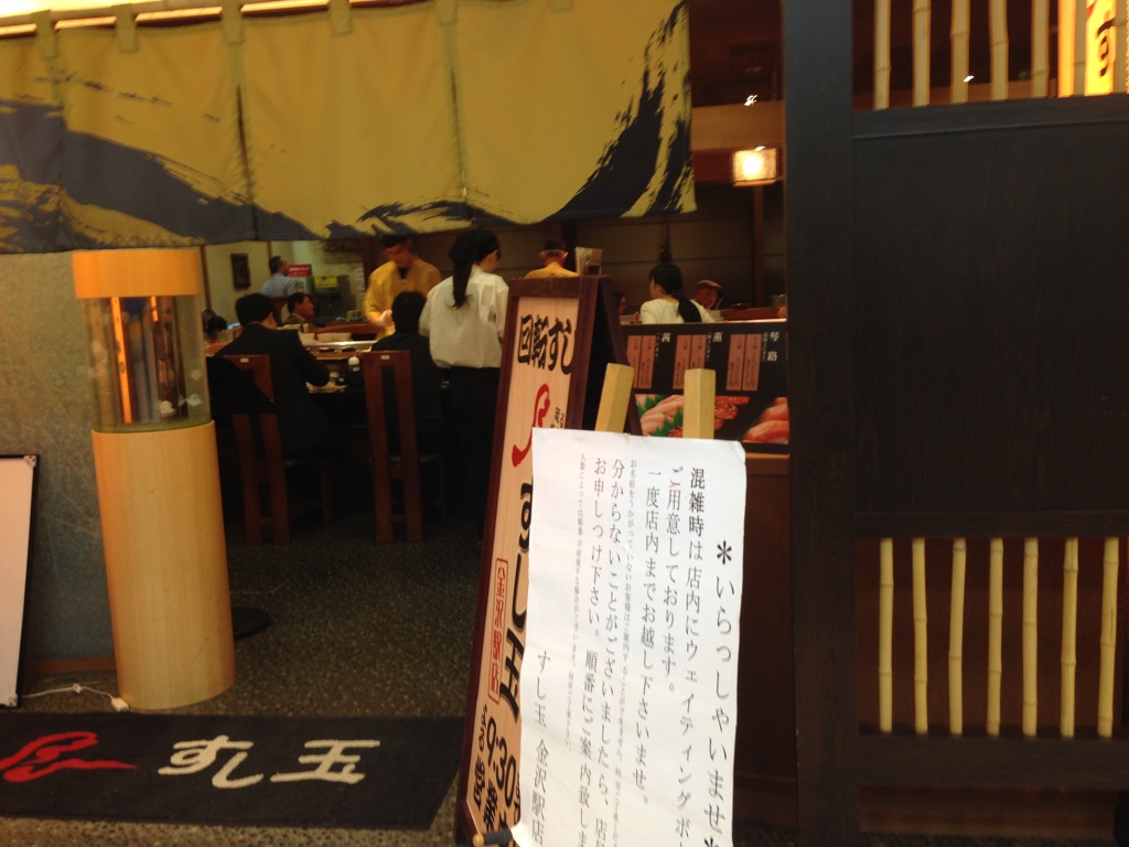 金沢の老舗寿司店金澤玉寿司が経営する回転寿し店。この店は金沢百番街くつろぎ館にあり、駅の西側にあります(エスカレーターに乗って2階のマツモトキヨシの向かい)。