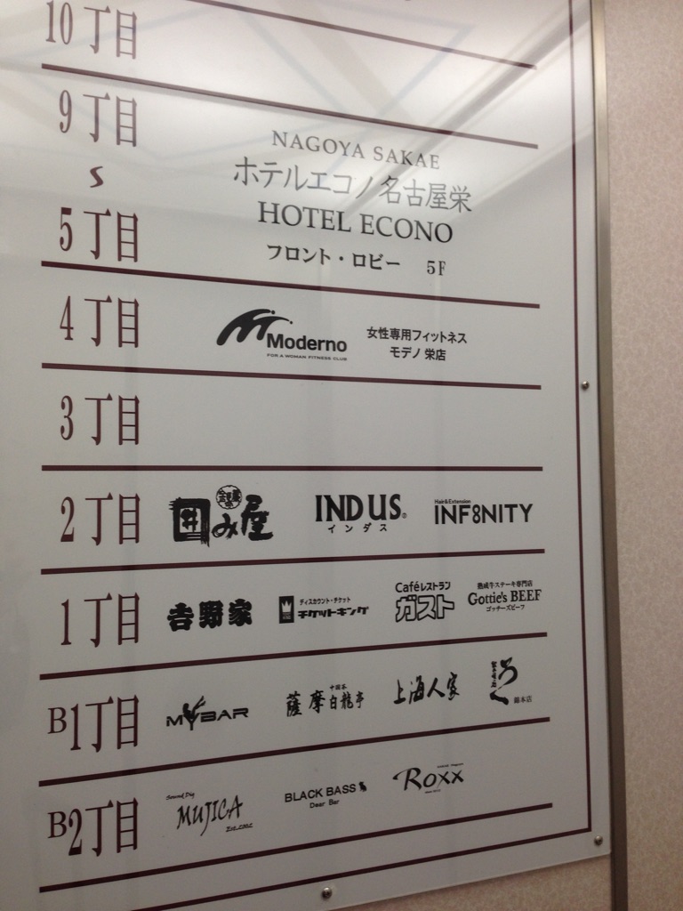 地下鉄桜通線・名城線「久屋大通」駅からすぐ、テレビ塔の目の前の立地ですが、看板がないため、初めての人は行き過ぎてしまいます。1階にガストや吉野家があるのでそれを目印にすると良いと思います。