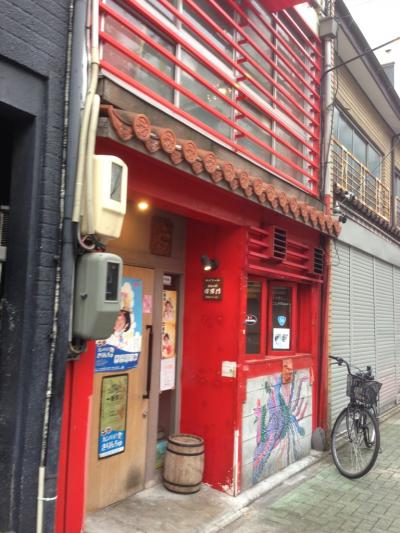 真っ赤な外観、狭い店内、1階のカウンターに並べてある泡盛の瓶など、沖縄雰囲気抜群!