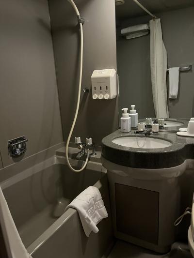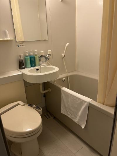 肝心な客室は一昔前の印象。他のルートインより古く感じる。特に気になったのはバスルーム。風呂は大浴場を使うので気にならないが、シャワートイレ(ウォッシュレット)が旧式。しかも操作方法通りに使っても噴射されない。壊れているのか…。