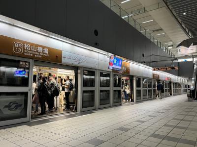 台北松山機場(空港)の真下にあるMRT文湖線の駅。空港の真下を通過するため、ひとつ手前の中山國中駅を出発すると大きく右に曲がりながら地下に入り、松山機場駅へ。この駅と大直駅は地下駅になる。