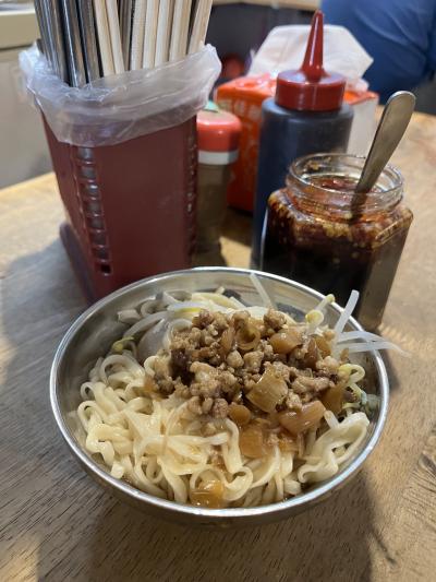 麺はコシがありもっちりした食感。肉そぼろは醤油ベースのタレで煮込れている。甘過ぎず優しい味。それとトッピングの煮卵もめちゃくちゃ美味しい。量もちょうど良くあっという間に完食。民権西路方面に宿泊の際はまた行きたい店である。- 旅行時期