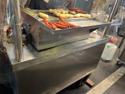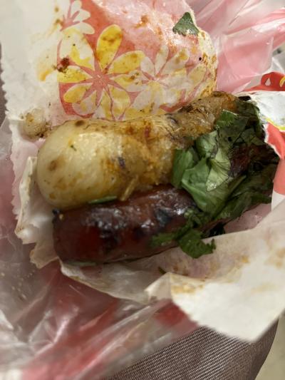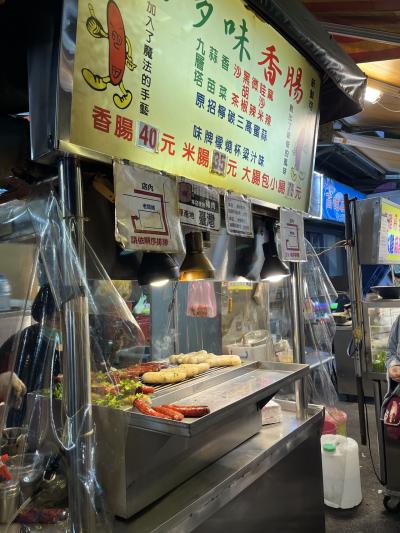 行列ができていた大腸包小腸の店でテイクアウト。大腸包小腸とはソーセージ状に固めたライスに焼いた台湾ソーセージを乗せたホットドッグのようなもの。甘めのソーセージと醤油風味のたれをかけたライスとの相性は抜群である。