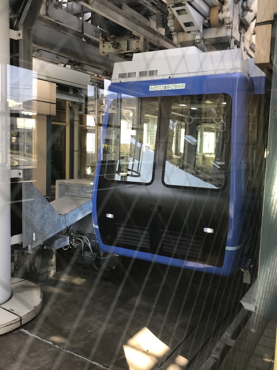 昼間は15分ごとの出発(山陽本線と接続)。みどり口駅を出発すると急勾配を登り始め、途中駅(みどり中街駅)に停車したあと、更に登り終着駅(みどり中央駅)に到着。元々住宅地のアクセス用なので、みどり中央駅には住宅以外何も無いが、天気の良い日は窓からの眺めはなんとも気持ちが良い。