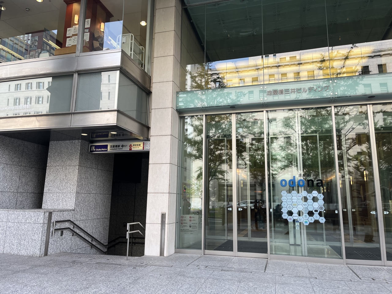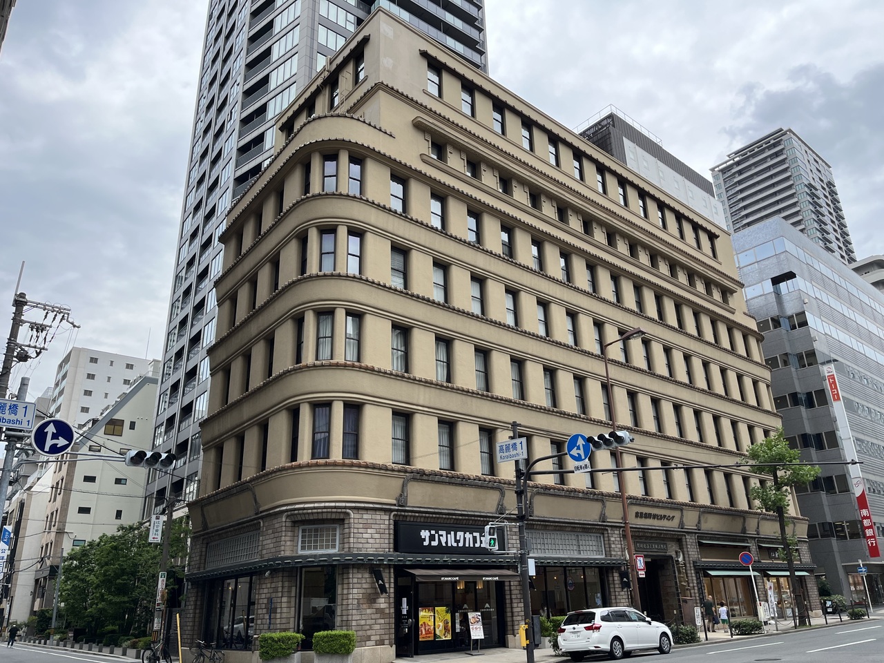 オフィスビルではあるが、堺筋沿いには和菓子店やサンマルクカフェなどが入店。サンマルクカフェは朝早くから営業しているおり、近隣ホテル宿泊時に便利。チェーン店であるが、ビルの重厚な感じを味わえる。- 旅行時期