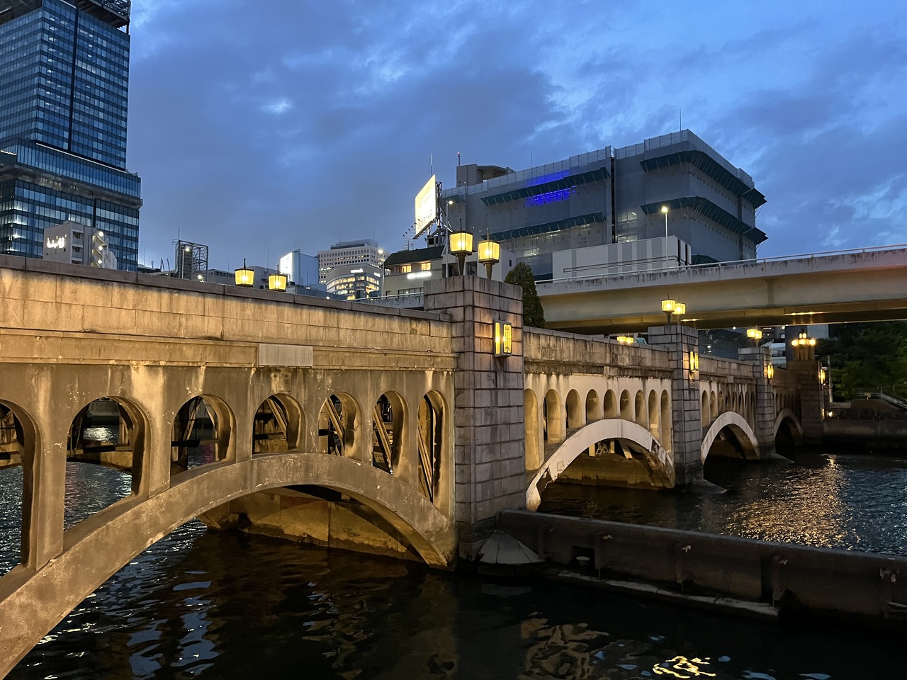 鉄筋コンクリート構造のアーチ型橋で、昭和4年に竣工した歴史ある橋。歴史が古い為、バリアフリーにはなっていないが、堂島川をゆっくり眺めるにはこの橋が一番おすすめ。