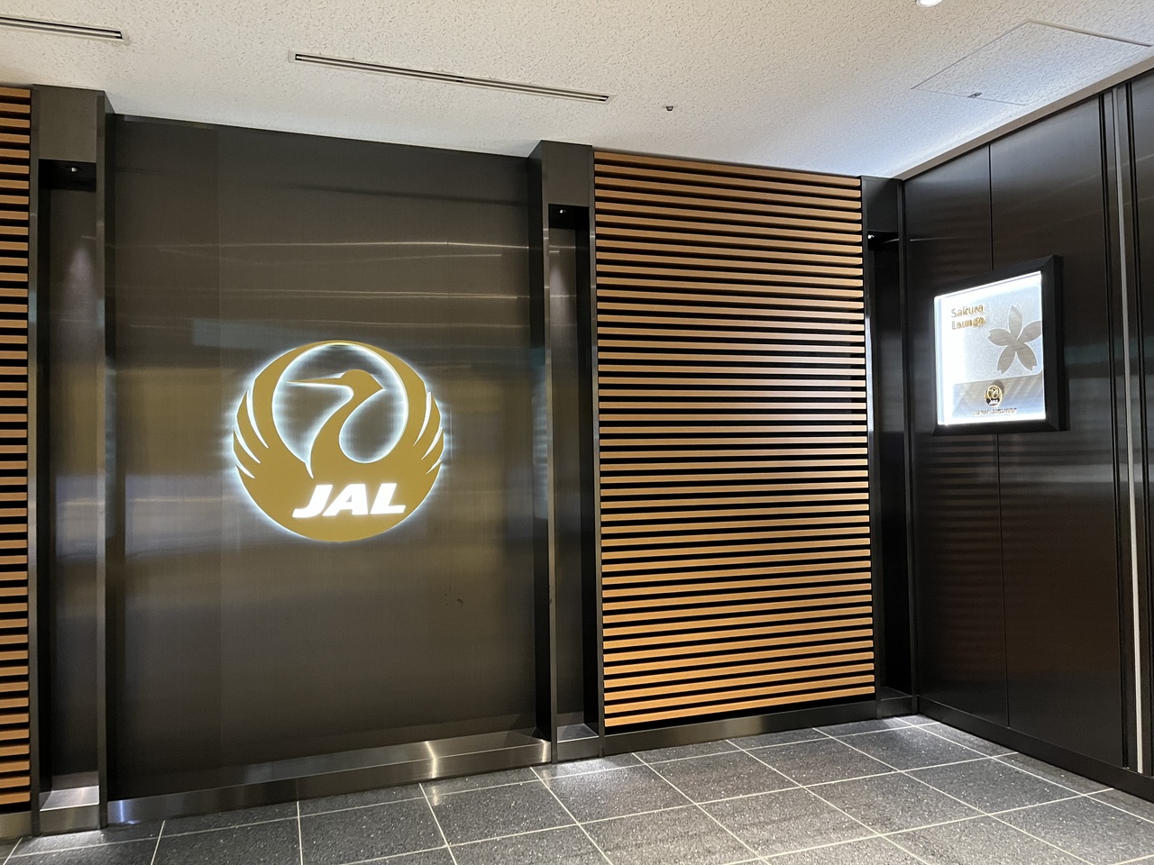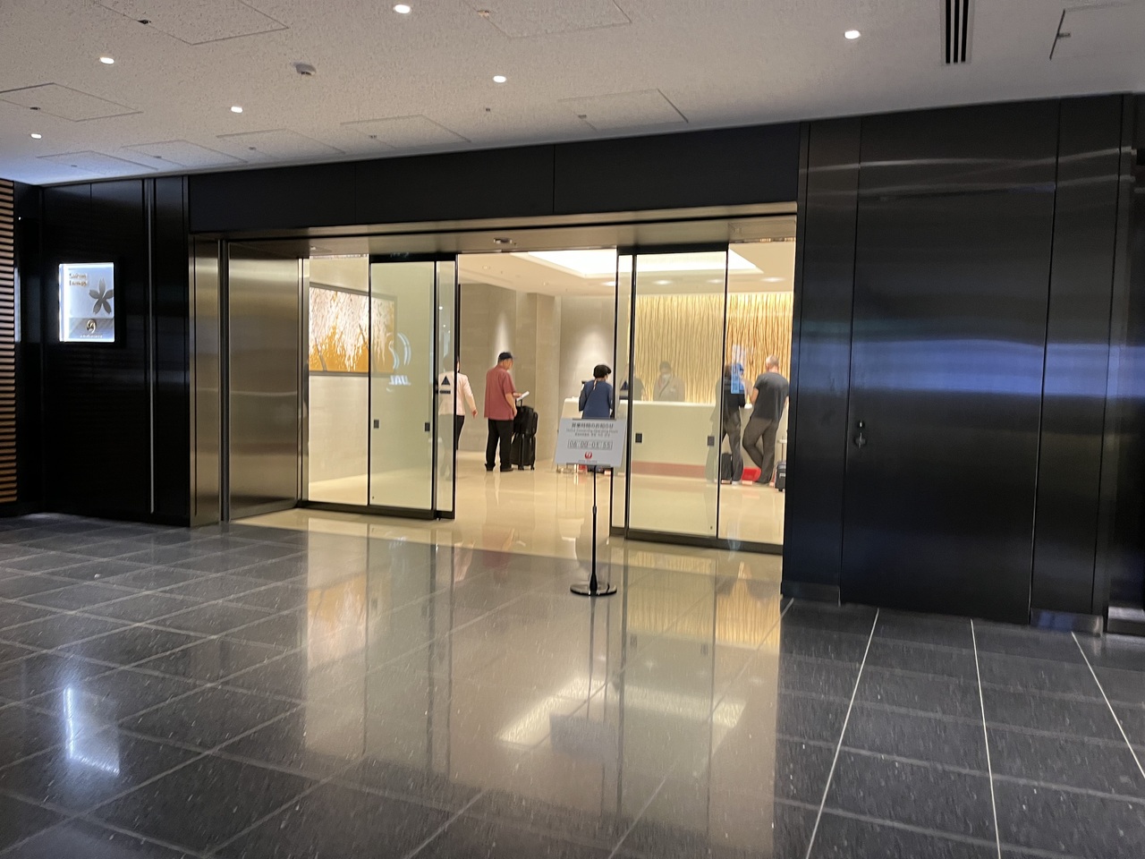 114番ゲートの近くのため、出発ゲートによっては少々遠いのが難だが、同じ羽田のANAのラウンジよりもゆったりしている。また「モダンジャパニーズ」がテーマのデザインは緊張感が無く落ち着く。
