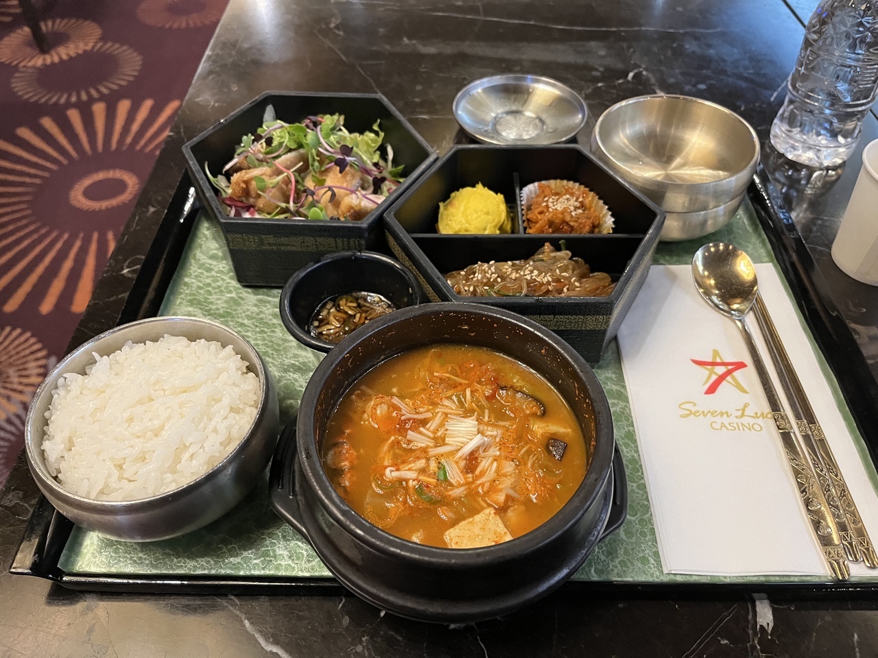 ソウルのカジノの中では比較的まともであった食事は若干グレードアップ。韓国料理が増えたようで韓国料理をそれなりに楽しめる(一定額のプレイを行った場合無料。1回食べると一定時間食べることができないのは昔と同じ)。