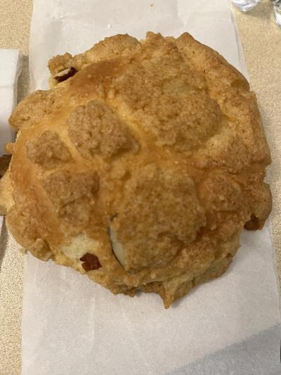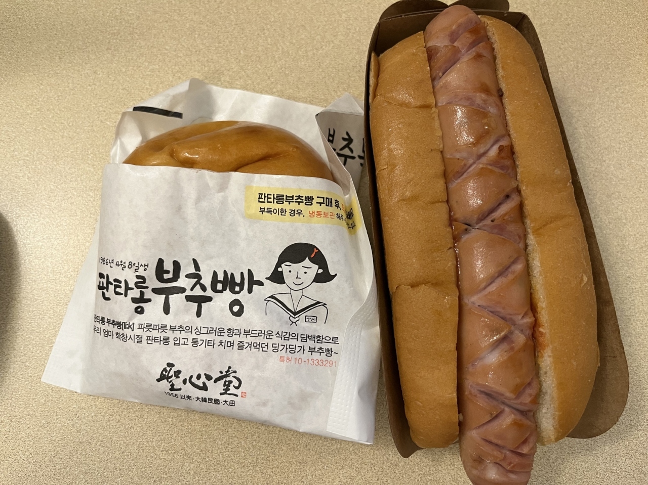 前回いただいたそぼろパン(ティキンソボロ)、にらパン(プチュパン)と桃のデニッシュ、ホットドッグ等を購入。どのパンも韓国のパン(パリバケット等)よりいいも柔らかく日本のパンに近い感じ。甘系のパンの甘さも控えめで小麦の美味しさを味わえる。ミシュラン掲載店なのも納得。