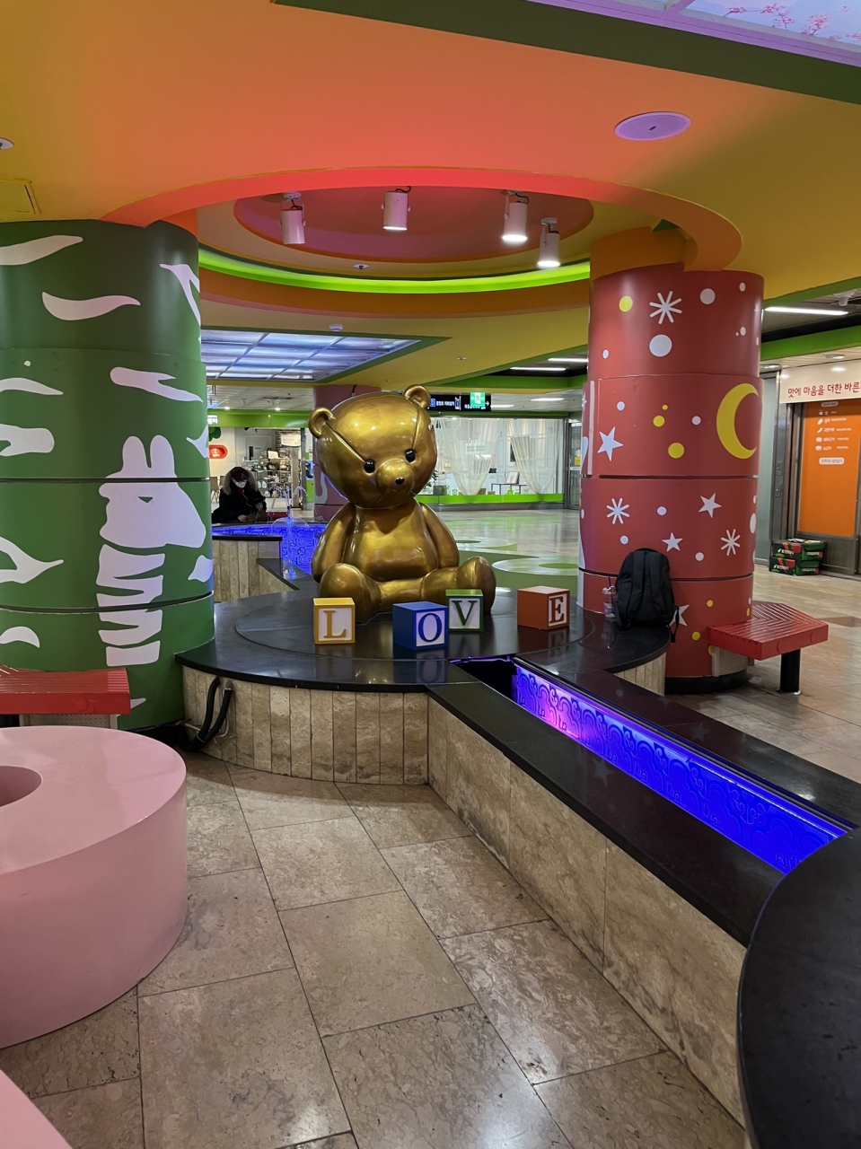 また韓国らしい噴水や展示物のスペースがあって、休んでいる人も多い。