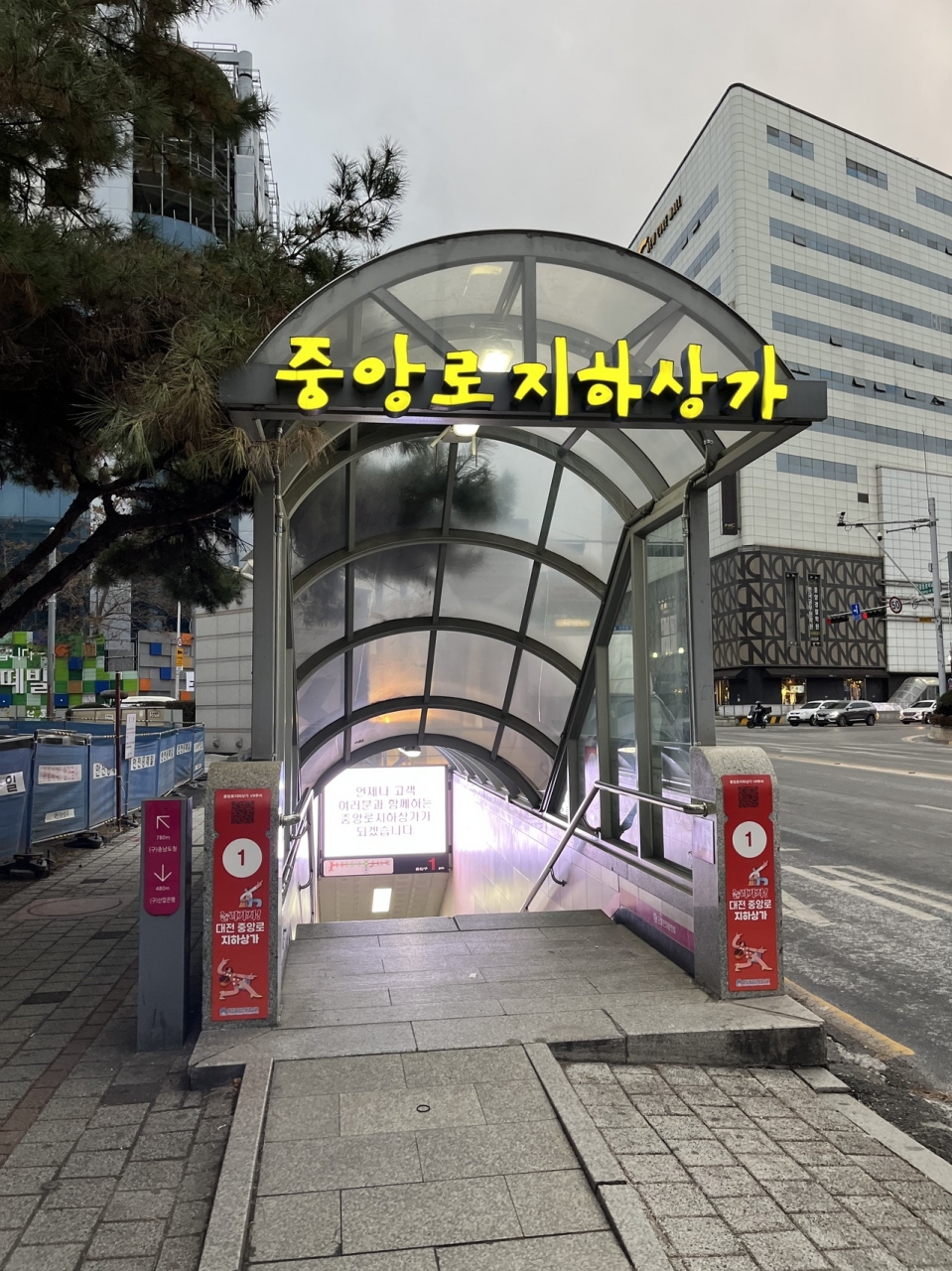 大田メトロ中央路(チュンアンノ)駅直結の地下街。寒い大田ではありがたい存在。
