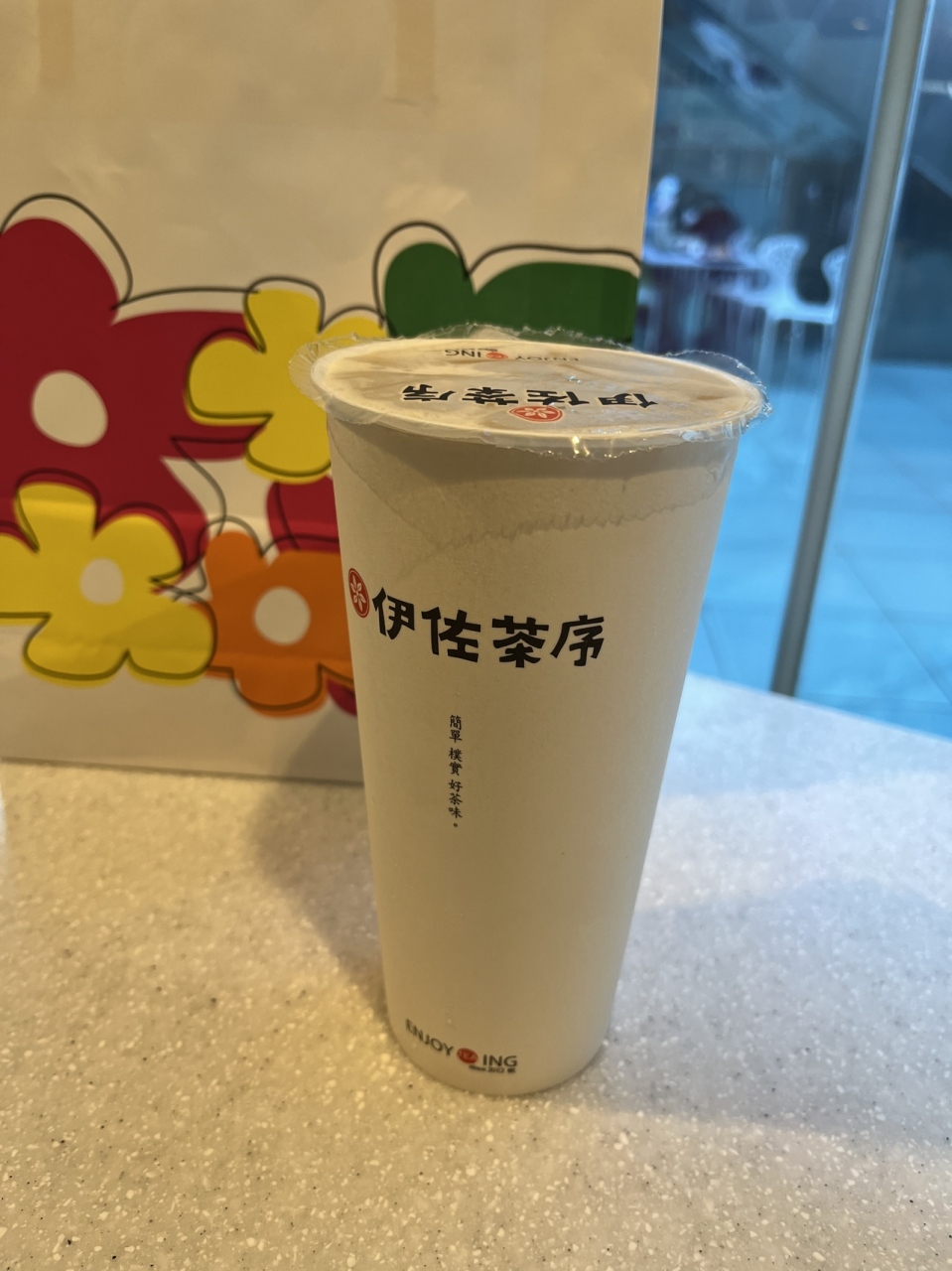 お茶は緑茶または紅茶から選べるのだが、今回は緑茶で。甘すぎ防止のため砂糖少なめで注文。飲んでみると薄めのヤクルト(乳酸飲料)の中にほのかに緑茶の味が広がる。さっぱりしていて美味しい。冬でも蒸し暑い高雄えの休憩にちょうど良い。- 旅行時期
