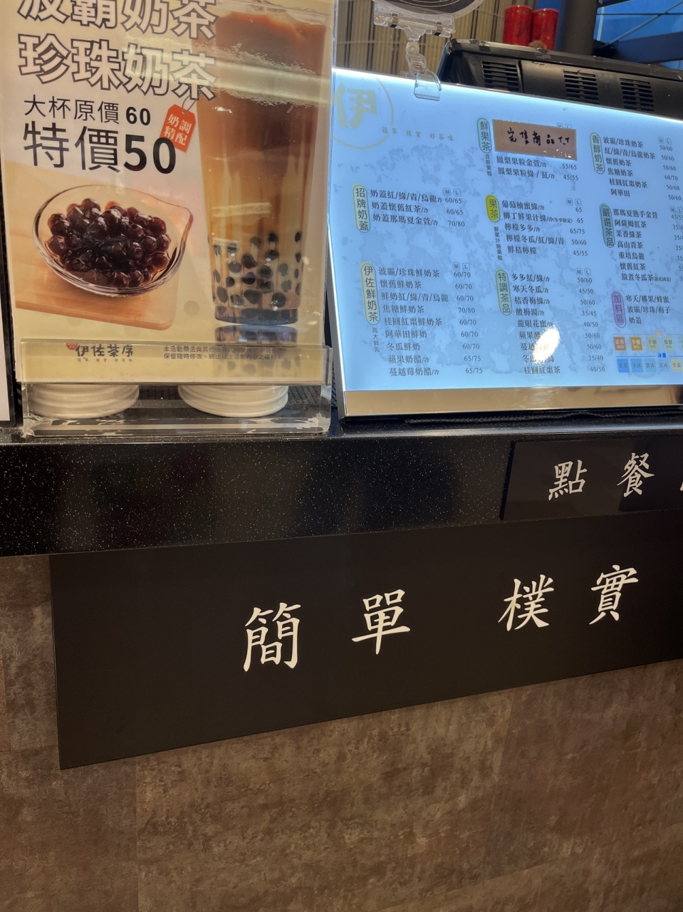 定番のタピオカ、柑橘果汁の入ったお茶などと共にヤクルトの入ったお茶を発見!!店頭のメニューは繁体字なので、ヤクルトと言うとスタッフが細かく説明してくれた。