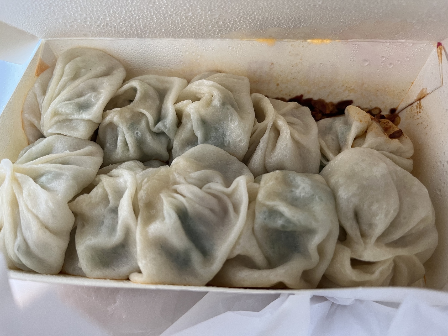餡は葱たっぷり。肉も充分に入っているが、スープは葱の甘さが味わえる。あっさりしていて美味しく、何個でも食べたくなる。