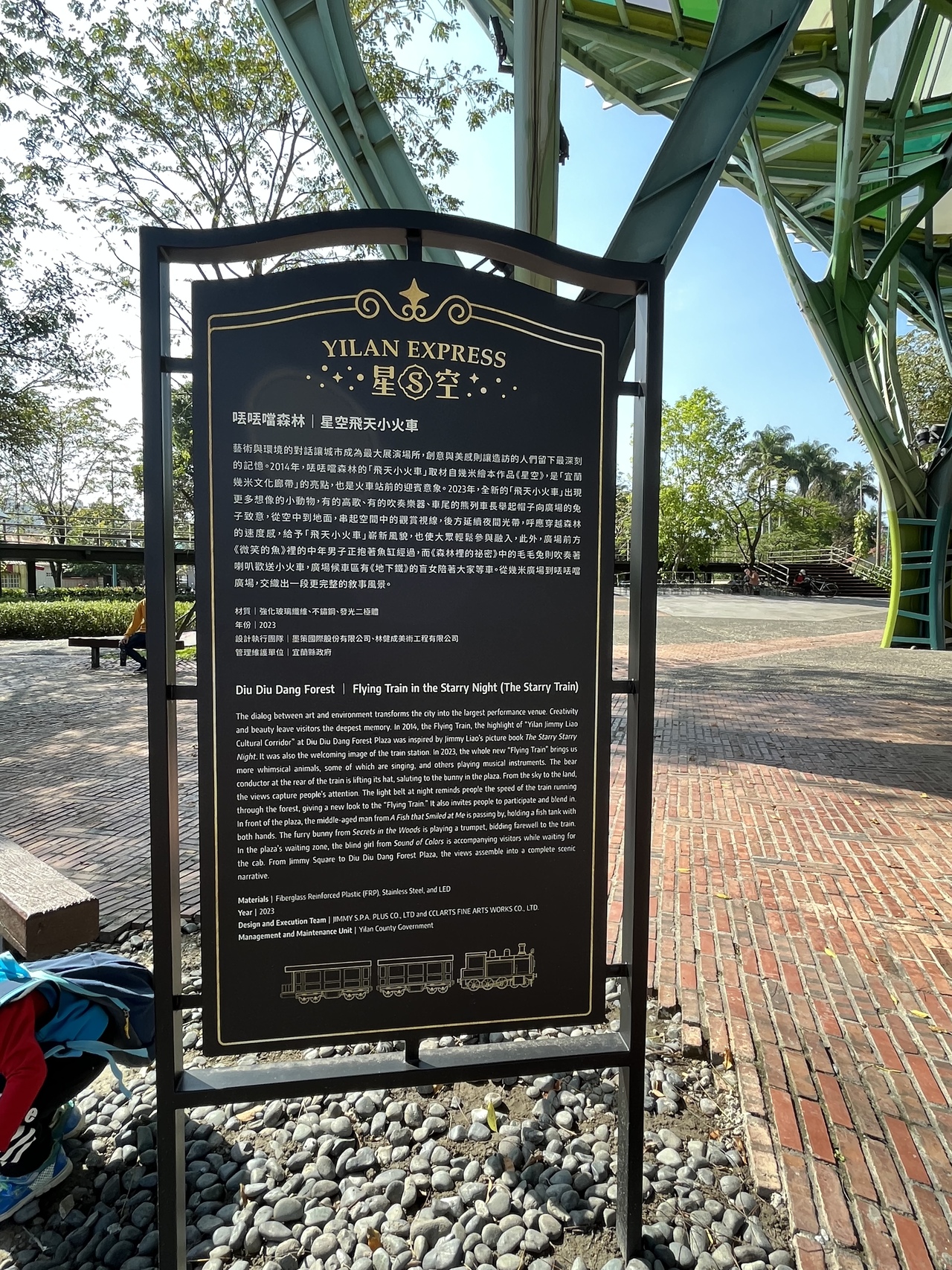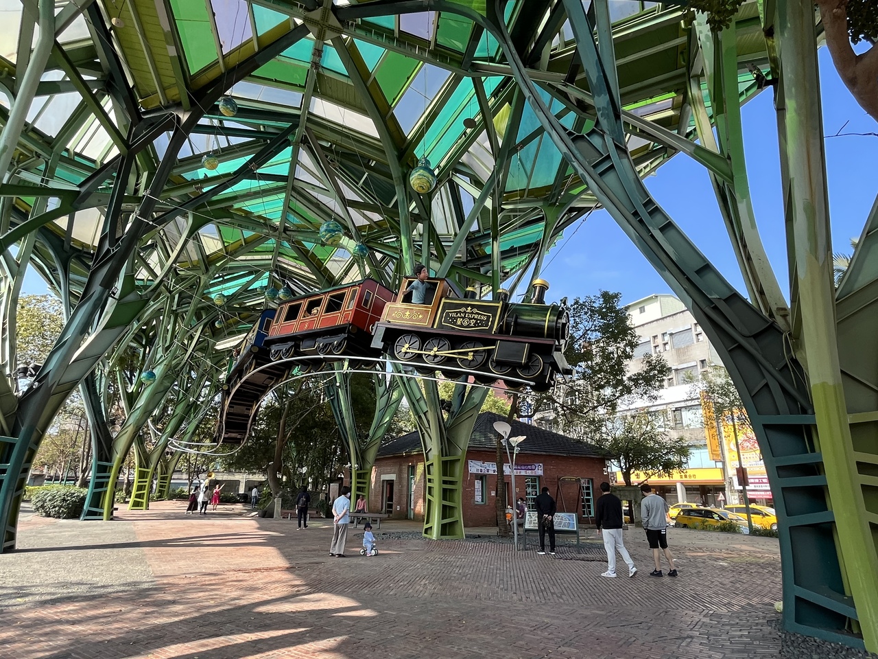 宜蘭駅前にある公園(広場)。元々鉄道局の旧宿舎があった場所だそうで、地元宜蘭縣生まれの絵本作家幾米(ジミー・リャオ)の絵本に出てくる動物や鉄道が形になって展示。格好のフォトスポット(インスタスポット)になっているようで、記念写真を撮る人でいっぱいであった。