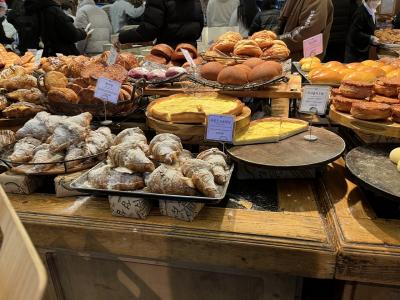 お店は他の店よりも大きめ、スタッフの接客も気持ちよい。買ったパンは2階でイートイン可能らしい(時間の関係で今回は持ち帰り)。