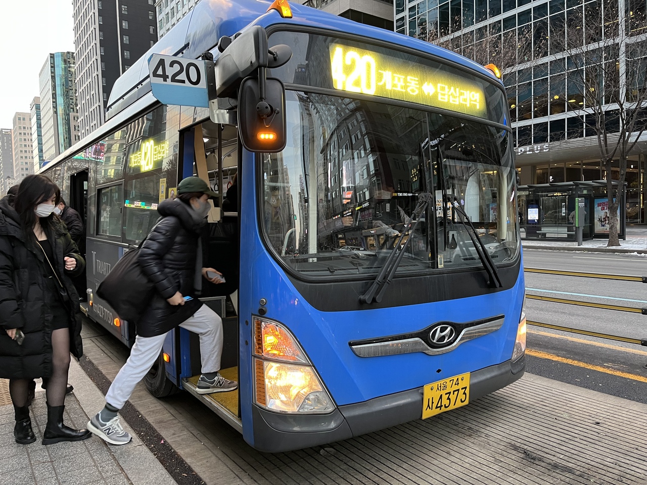 420番は江南駅、新沙駅、東大門をダイレクトに結ぶので、乗り換えが無い分地下鉄よりも便利。江南エリアは中央線の専用道路を利用するので、渋滞も少なめ。運賃も1,250ウォン(交通カード利用時)。