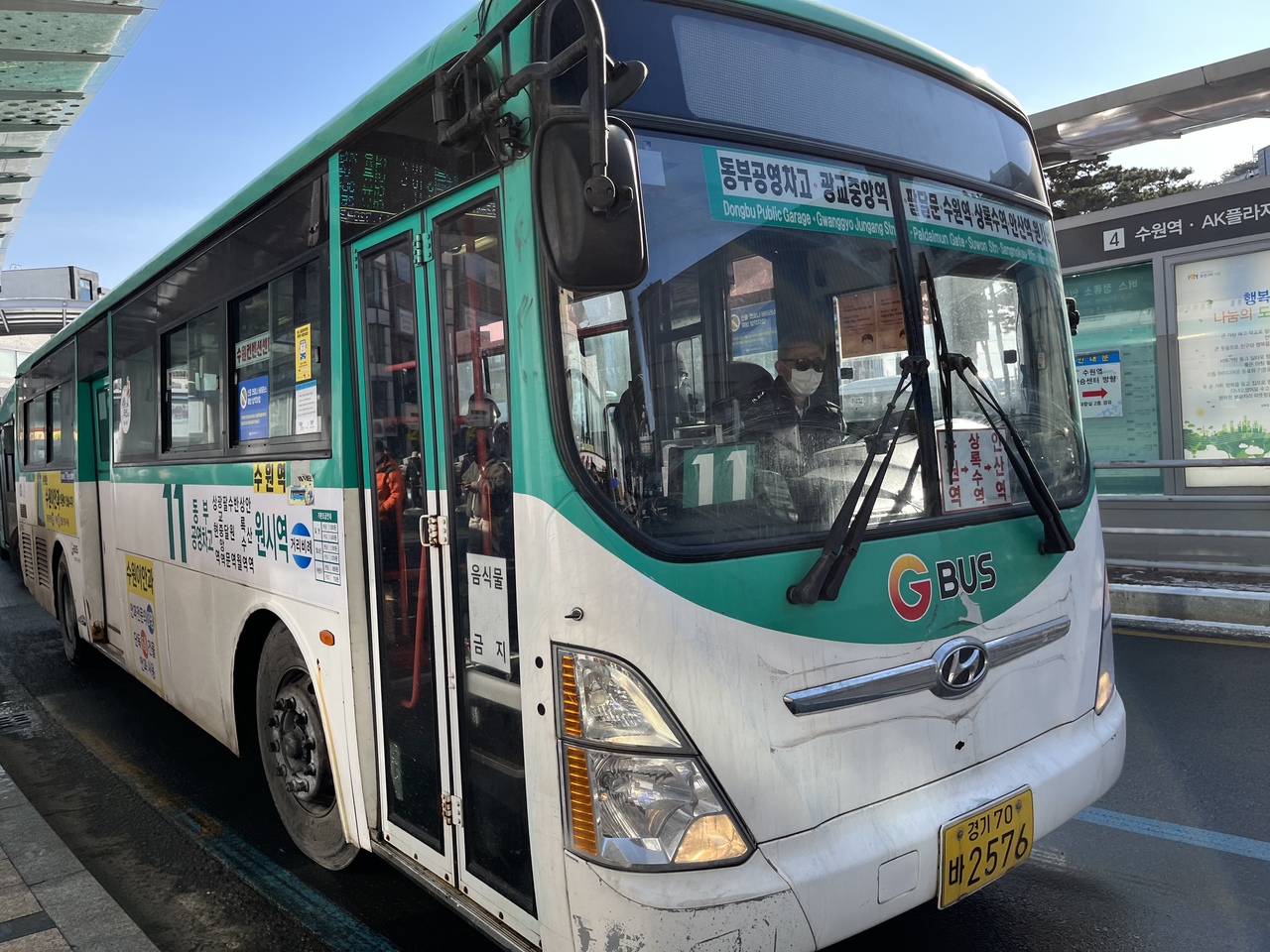 水原市を中心とする京幾道の路線バスはGバスという名前で運行。ソウル、釜山とは異なり市内バスは水色または薄緑色に白、急行(広域)バスは朱色に白のツートンカラー。水色と白のバスは川崎市営バスを思い出すような感じ。またソウル江南エリアと水原方面を結ぶ通勤用のバスにはダブルデッカーも投入されている(色は異なる)。