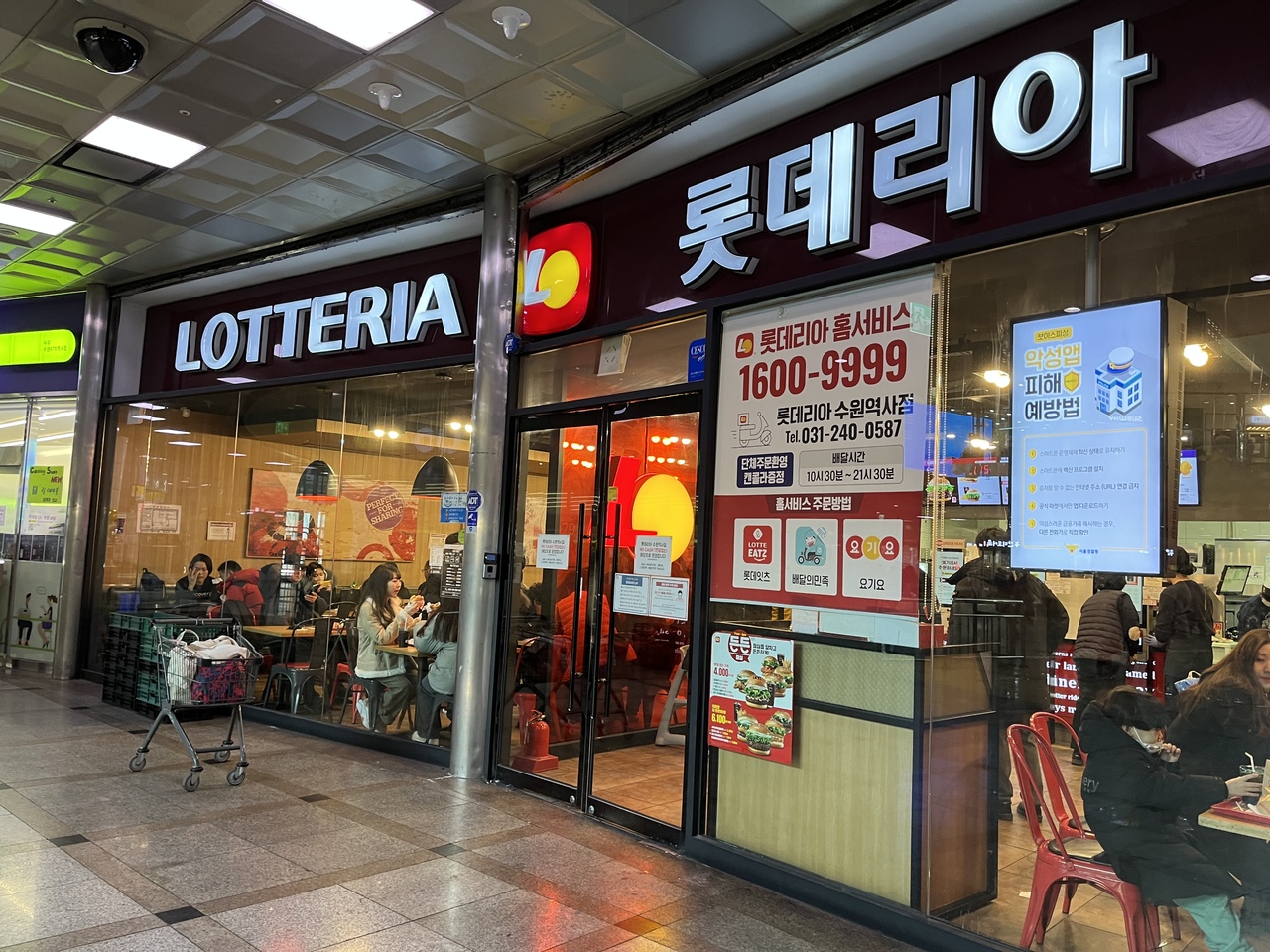 水原駅構内にあります。店構えは他のロッテリアと同じ。