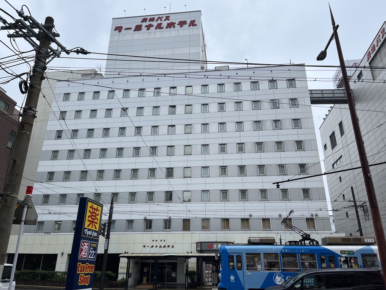 長崎空港よりリムジンバスで約35分、新地中華街バス停目の前にあります。出島道路の出口からすぐなので、渋滞に巻き込まれることもないようで、遅い到着でも嬉しい。