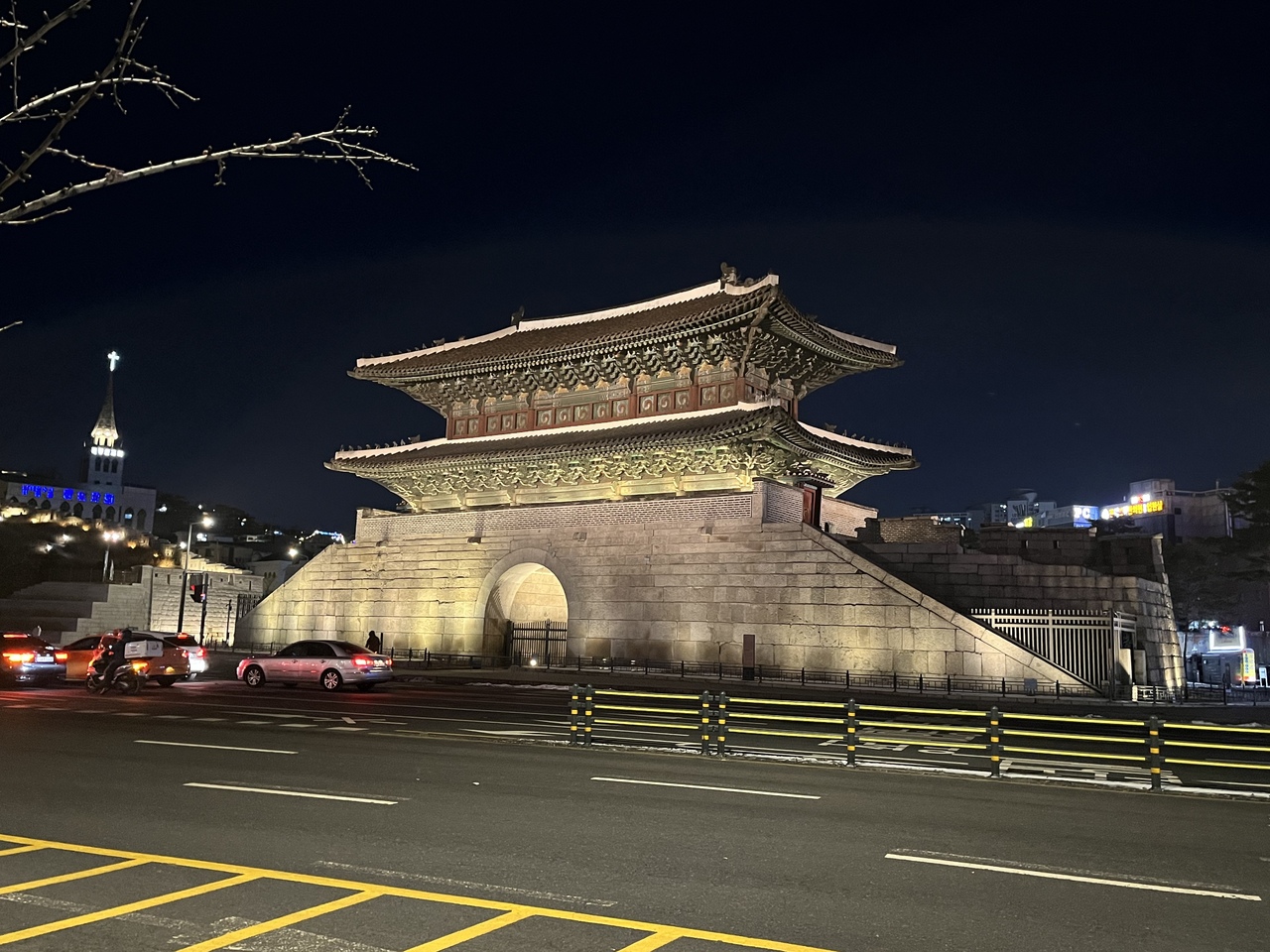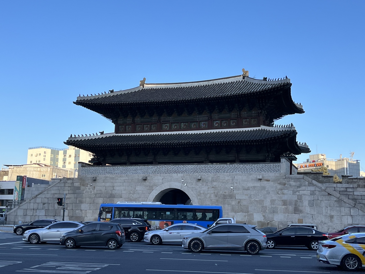 半円形が特徴の城郭門のライトアップは幻想的で思わず写真を撮りたくなる風景。ソウルのおすすめ夜景スポットに選ばれているそうで、すぐ近くの東大門デザインプラザ(DDP)のライトアップを見た後に訪れるのも良いかも。ただし、冬場(2022年12月訪問)の夜は結構な寒さ。踏み固められた雪が凍っている場所もあるので、滑りづらい靴で行くことをお勧めする。- 旅行時期