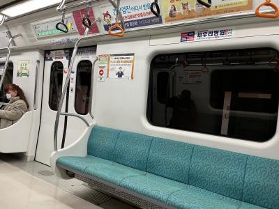 ただし、昼間は10分間隔なので、ソウルや釜山の感覚があると待ち時間が長いような。また、釜山地下鉄3号線の車両に似た4両編成で運行されているせいなのか、昼間でも混雑しているのが難点。