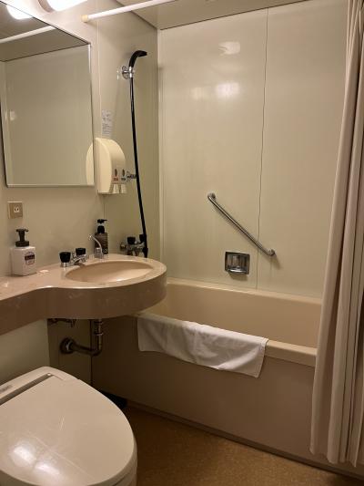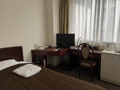 茶色い建物には高級な雰囲気のレストラン、宴会・会議場がありシティホテルの雰囲気。一方部屋は古い(=レトロではない)。冷蔵庫やバスルームは昭和の雰囲気満載!ホテル代が比較的高めの長崎で価格がお値打ちなのはそのせいなのか。もちろん、清潔で宿泊するには問題のでご安心を。- 旅行時期