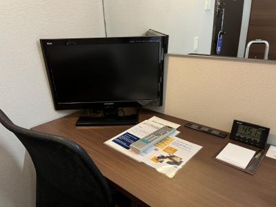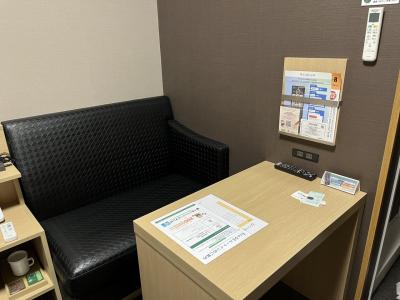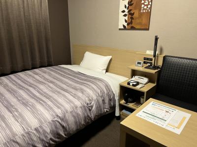 客室は他のルートインと変わらず比較的広い部屋。今回宿泊した部屋には作業机と大きめの椅子があった。また、人工温泉だが大浴場は大きめ。休憩スペースもあるのでゆったりできる。