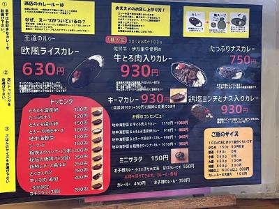 注文は好きなカレー(欧風ライスカレー、牛とろ肉入りカレー、キーマカレーなどから)を選び、トッピング、ごはんの量選ぶ仕組み。