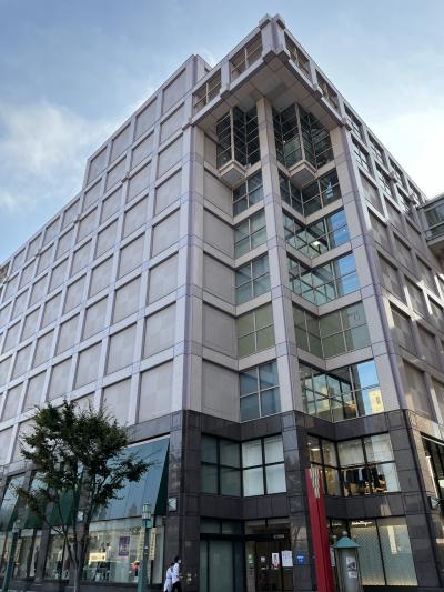 JR小倉駅から徒歩10分ほど、紫川にかかる勝山橋(石の橋)の手前にあります。本館と新館の間から小倉城が綺麗に見える。