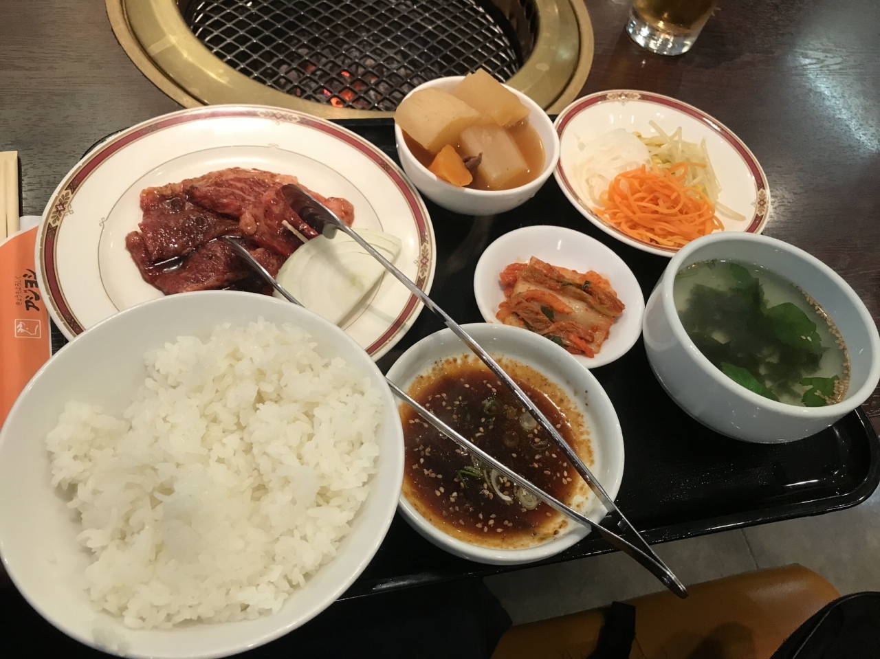 無煙ロースターで焼いた肉は昼でも最高!ご飯は食べ放題なので、思わずお代わりしてしまった。- 旅行時期