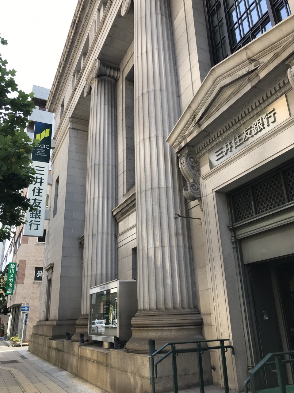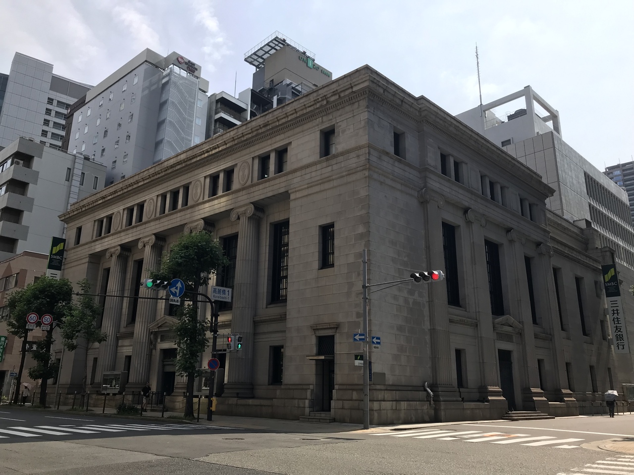 1936年(昭和11年)に建てられた旧三井銀行大阪支店の建物。1937年(昭和12年)に逝去した曽禰達蔵の最後の作品とも言われている。銀行名は何度関わっているが、建物はそのままの形を継承しており、銀行建築らしい重厚で格式のある建物は一見の価値あり。