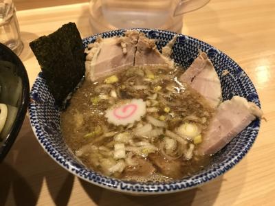 入る。つけ汁は豚骨に魚粉が入っているようでめちゃくちゃ濃厚。多めの葱が良いアクセントになっていて、極太麺によく合う感じ。