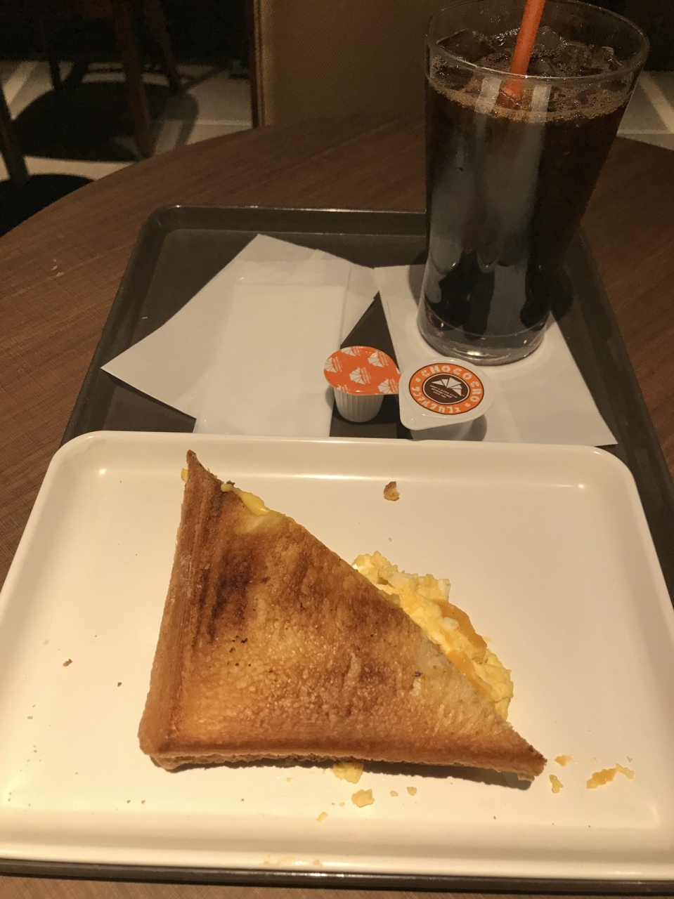 今回はベーカリーでチーズケーキを購入。種類が多くて迷うがサイズが巨大、チーズが濃厚なので、1個が限界(夜は難しそうなので朝ごはんにした)。ストロベリーチーズケーキにしたが、チーズの味が濃厚。甘いがそれほどくどくない。ただしコーヒーはブラックの方が良い。- 旅行時期