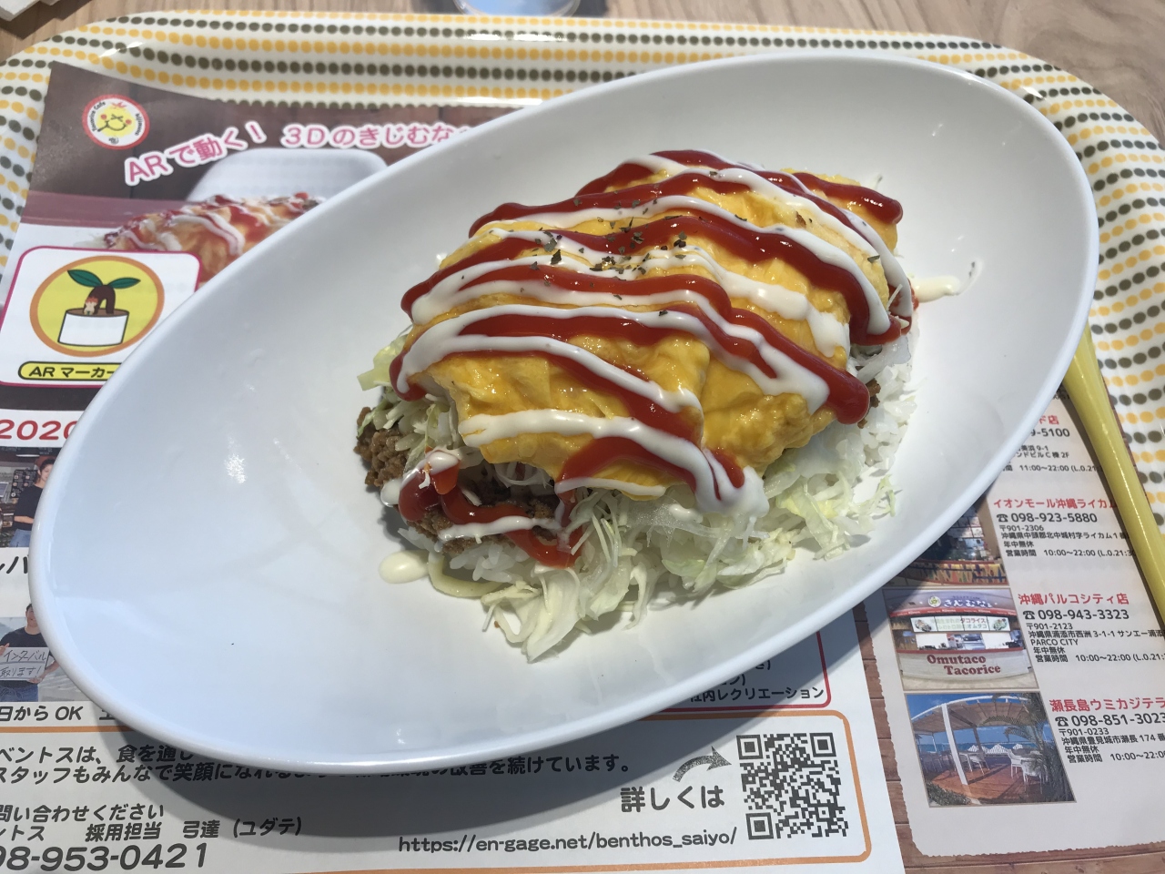 タコライスにオムレツがのっているだけのであるが、卵はふわふわで家庭ではなかなかできないかも。タコライスは万人受けする味。- 旅行時期