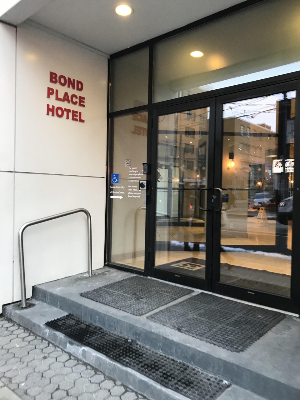 地下鉄DUNDAS駅から徒歩3分程。イートンセンターがすぐ近くにある。付近は繁華街であるが比較的静か、犯罪等の心配も低そう(個人的な感想だが)。
