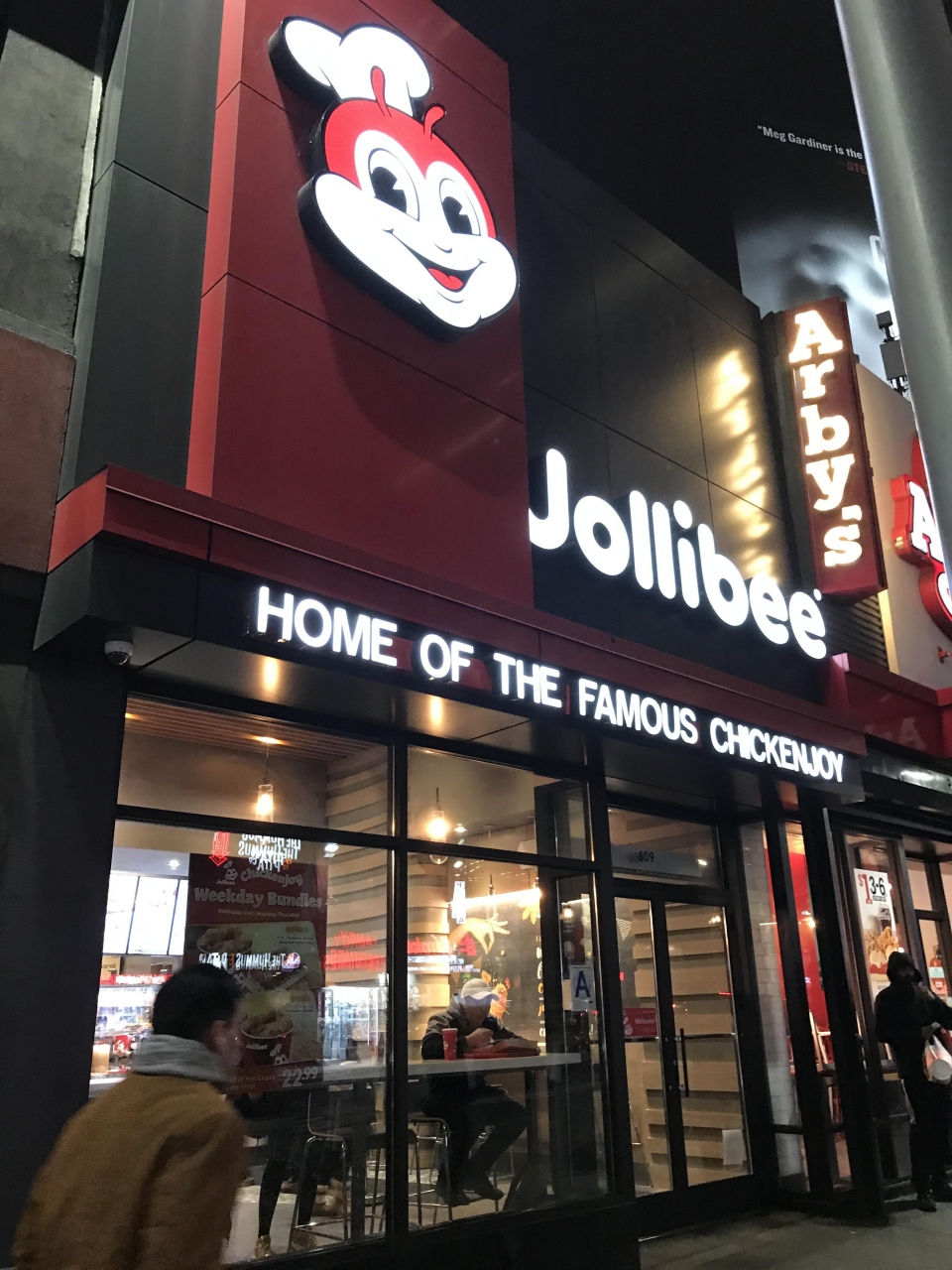 42 Street–Port Authority Bus Terminal駅を出て徒歩3分ほどのところにあります。フィリピンで最もよく見かけるファーストフード(マクドナルドよりも店舗が多い)で、香港や中東の店舗ではフィリピン系の人ををよく見かけるが、マンハッタンの店は街に溶けこんでいるようで顧客層の偏りはない感じ。