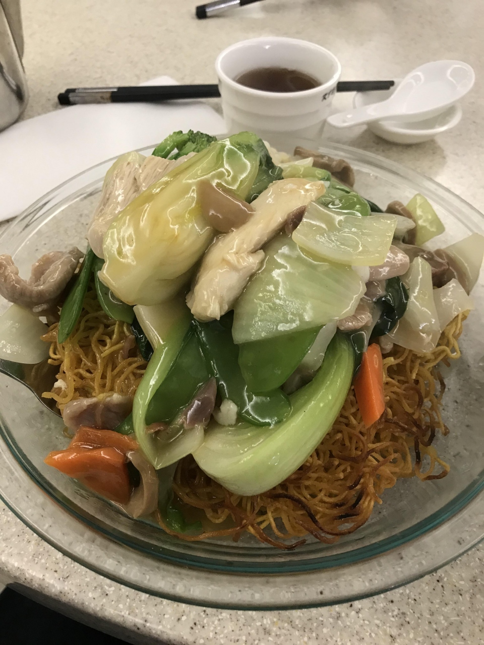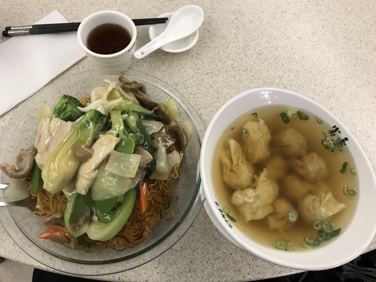 スペシャルフライヌードル(五目焼きそば)とワンタンスープを注文。カナダのせいなのかどちらも結構なボリューム。焼きそばは麺がちゃんと焼いてあってカリカリしている。それにかかったあんかけは具が多く、味もちょうど良い。ワンタンスープはスモールを頼んだが、ワンタンが9個入っており、これも結構場ボリューム。でもスープはあっさりしていて焼きそばのおともにおすすめ。