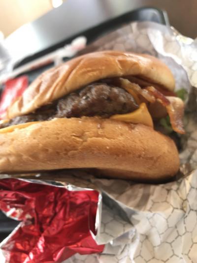 小さめのベーコンチーズバーガーとチリ(ポテトから変更)のセットを注文したが、ハンバーガーはボリューミー!でもパテはジューシーで脂っこくない。チリは辛くなく(辛くしたければ自分で入れる)トマトの風味がちょうど良い。