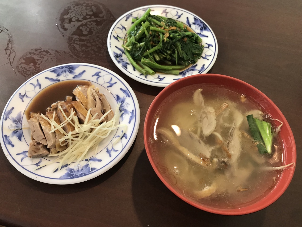 店名になっている鴨肉麺は湯(スープ)、羹(とろみのあるスープ)、乾(スープ無し)の3種類。現地の方には乾が一番人気なそうなのだが、今回はベーシックな湯(鴨肉湯麺)を注文。またせっかくなので鴨肉ロースト(煙燻鴨肉)、空芯菜を注文。