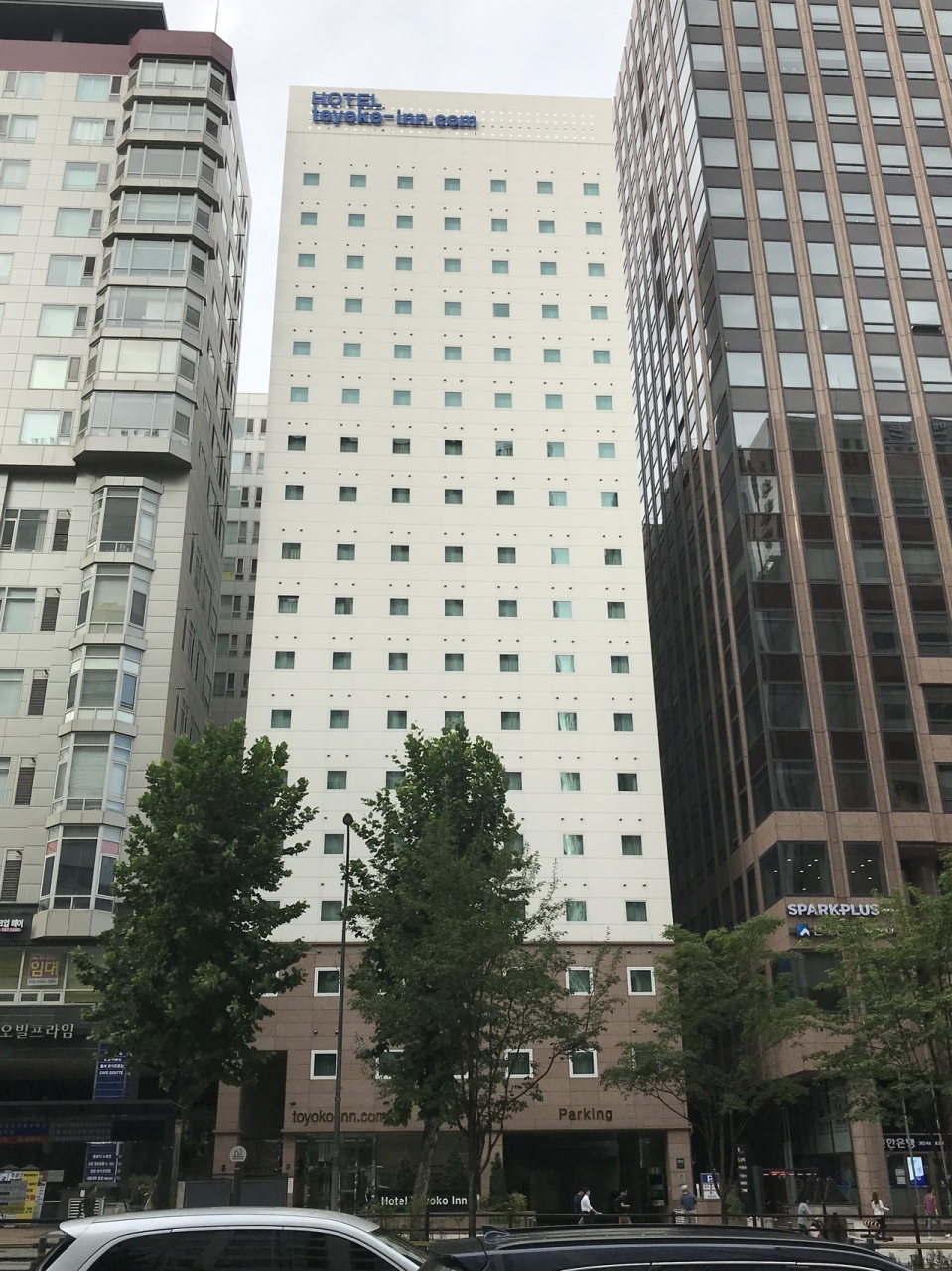 ソウル江南の大通り(Gangnam-daero)沿いにある東横イン。仁川国際空港から行く場合、高級リムジンバス(6009番)に乗車し、江南駅の次のバス停(ウソンアパート)で下車するとバス停の目の前にある。また、地下鉄2号線江南駅からは徒歩10分、新盆唐線江南駅からは5分程度。江南付近に目的がある場合は非常に便利である。