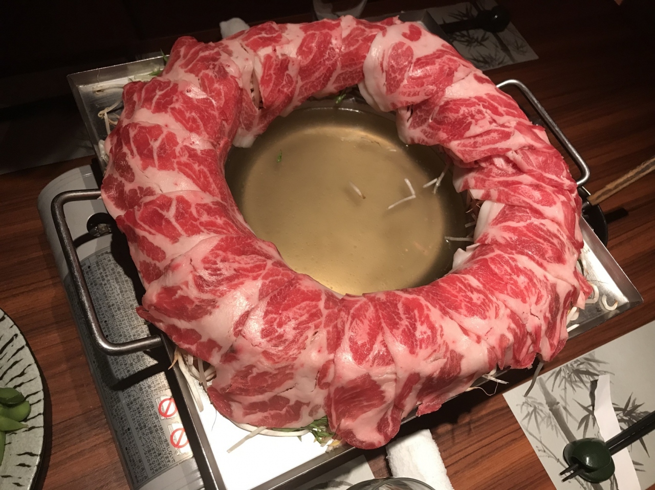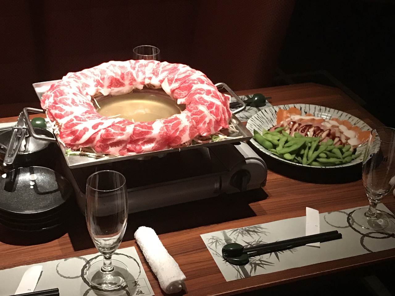 ラウンジのような店内、ムード照明で、エレベーターを降りた瞬間はしゃぶしゃぶ店というよりもクラブのイメージがするが、慣れてくると居心地が良くなる感じ。不思議である。