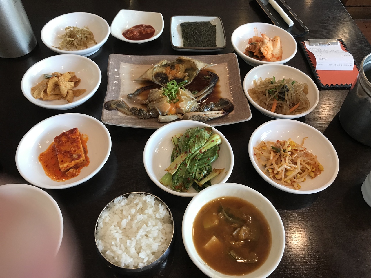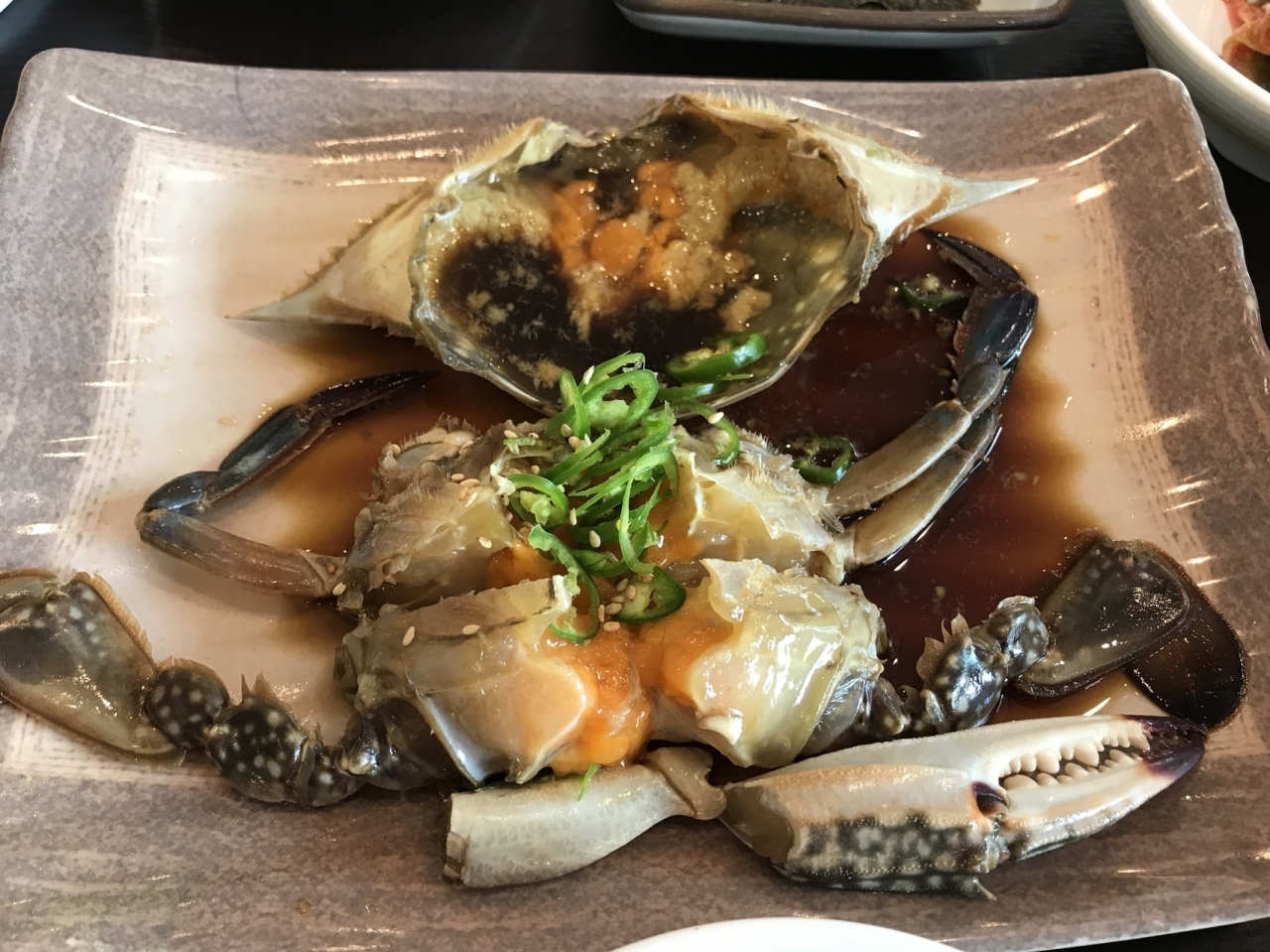 カンジャンケジャンは33,000ウォンと少し高めだが、醤油のタレの味がちょうど良く生臭くない。ご飯にもあうので思わずご飯をお代わりしてしまった(ご飯の追加は1,000ウォン)。おかずも美味しい。流石、ミシュランの味。- 旅行時期